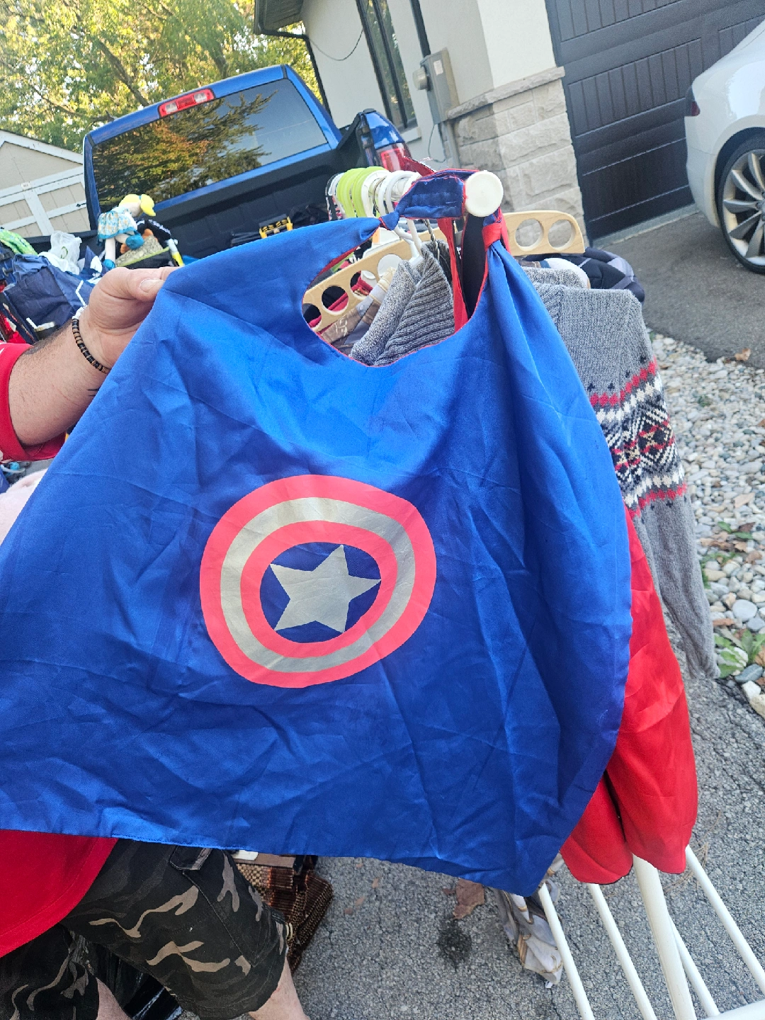 15Check out these 2 fun superhero capes! One features Captain America's iconic shield, and the other has Spider-Man's spider logo. Perfect for dress-up and imaginative play!