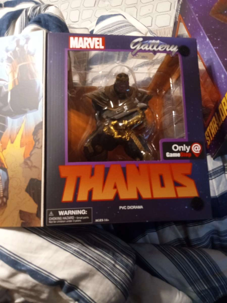 Selling a Thanos action figure, still in its original packaging! It looks like it was originally bought for $50. Great for any Marvel fan or collector!