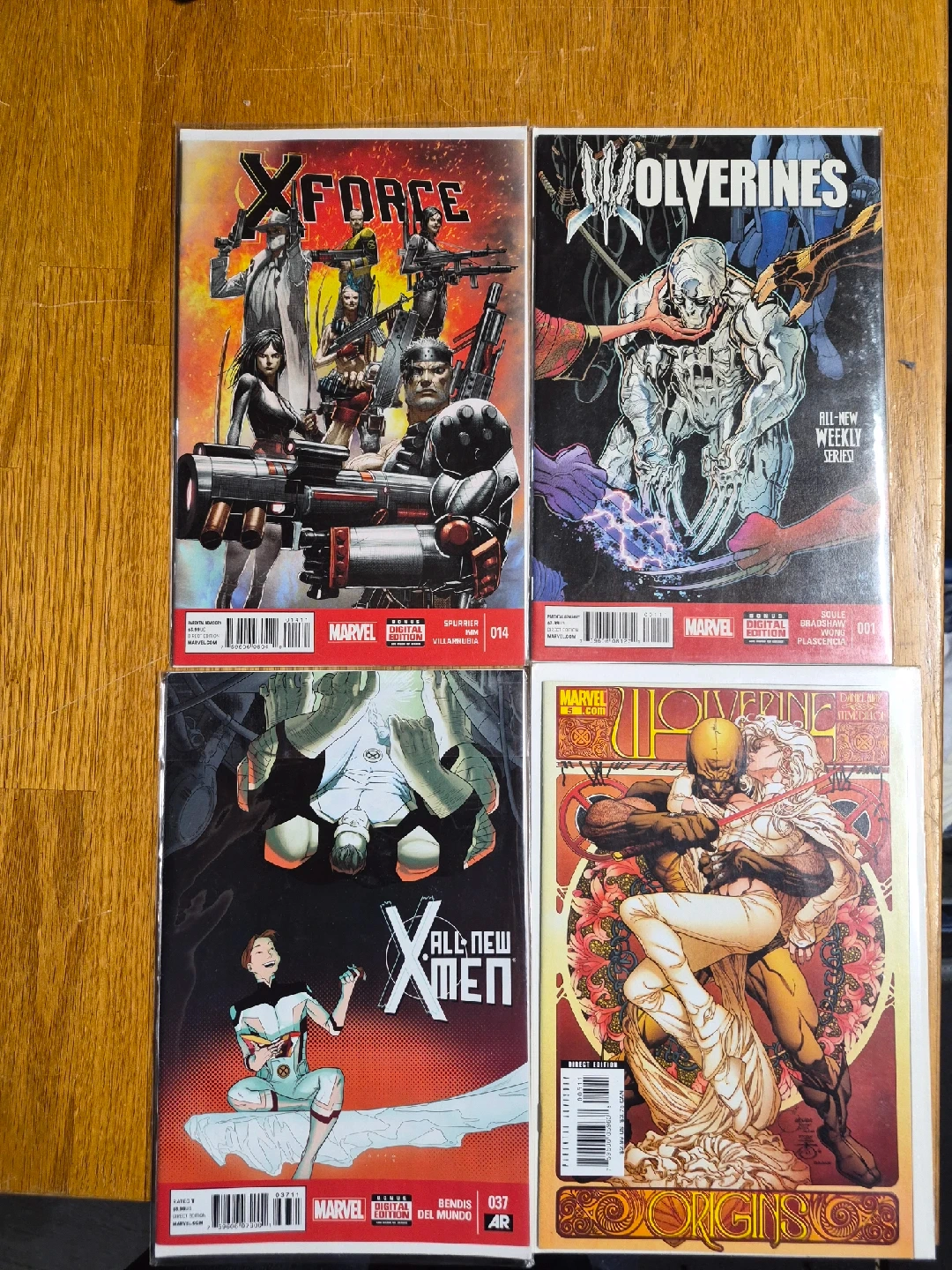 10Selling a set of Marvel comics! Includes X-Force #014, Wolverines #001, All-New X-Men #037, and Wolverine Origins. Great for any comic book collector!