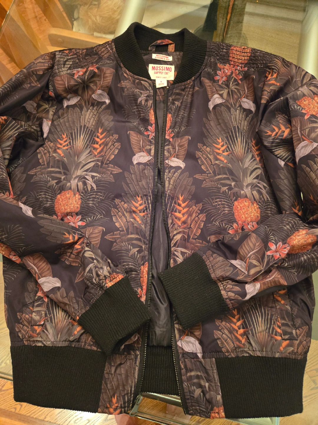 65Here's a Massimo Dutti bomber jacket with a unique floral pattern! It's in great condition and perfect for adding a touch of style to your wardrobe