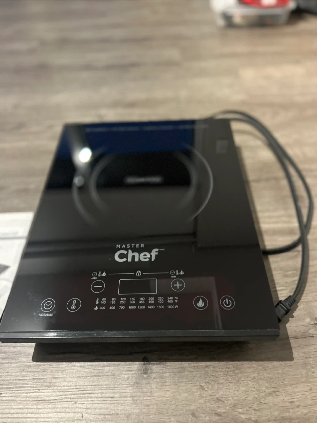 Selling a Master Chef induction cooktop. It has a sleek design and is easy to use. It heats up quickly and has adjustable temperature settings. Great for cooking at home!