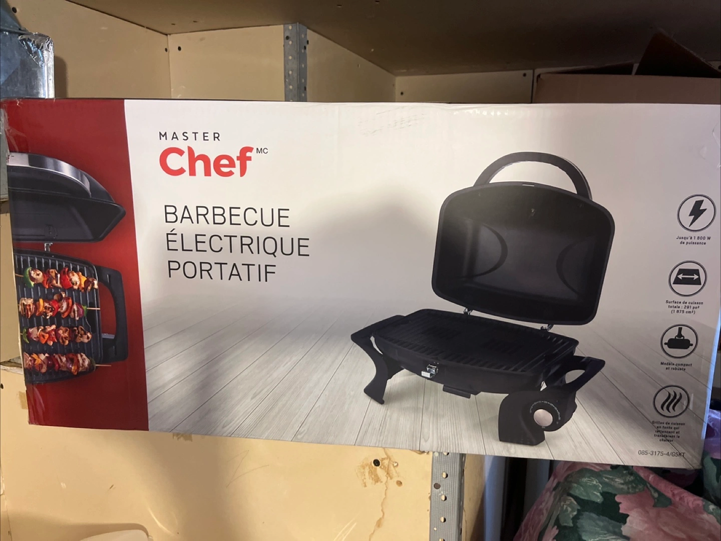 Selling a Master Chef portable electric barbecue. It's compact and robust, perfect for small spaces! The cooking surface is 201 sq in (1875 cm²). It can reach up to 1800W of power. Get ready for some delicious grilling! CASH only please.