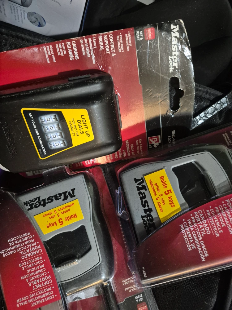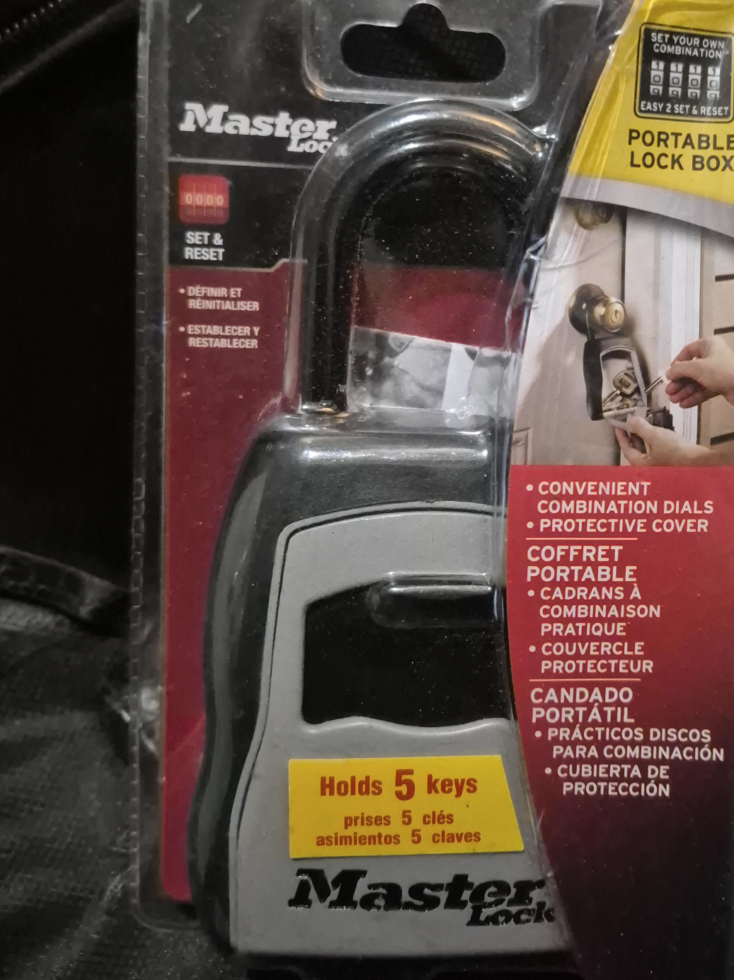 Selling a brand new Master Lock portable lock box! It's designed to hold up to 5 keys, making it super convenient for sharing access. It features easy-to-set your own combination dials and a protective cover. Perfect for realtors, vacation rentals, or anyone needing to share keys securely!