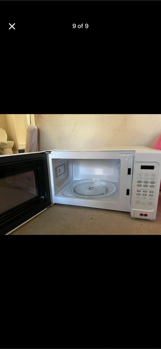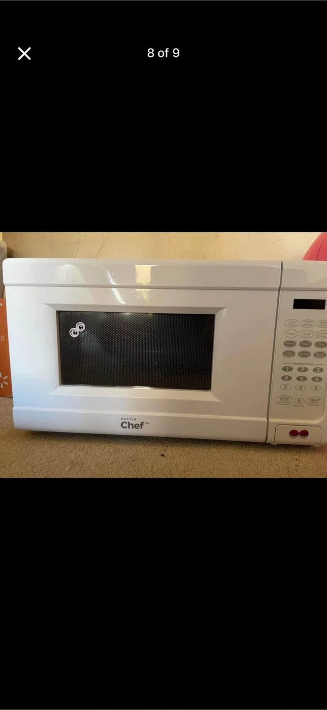 10Selling a MasterChef microwave in white. It's in good condition and ready for a new home! It features a rotating glass plate inside.