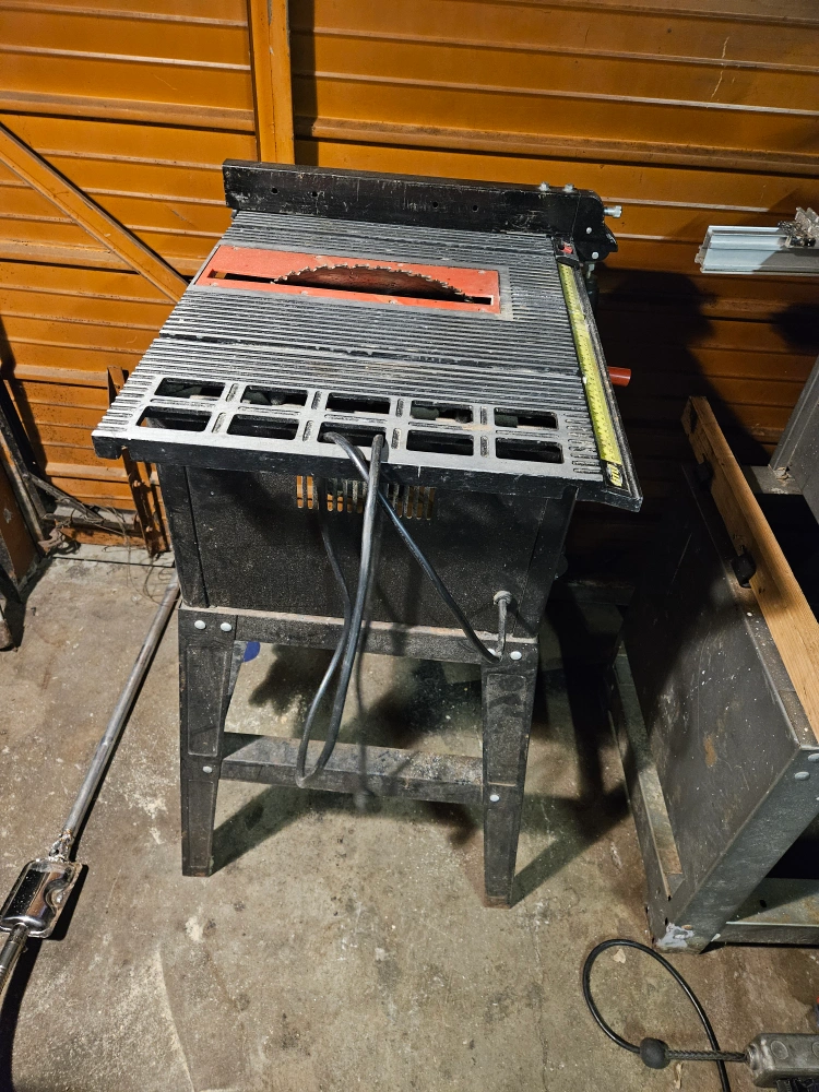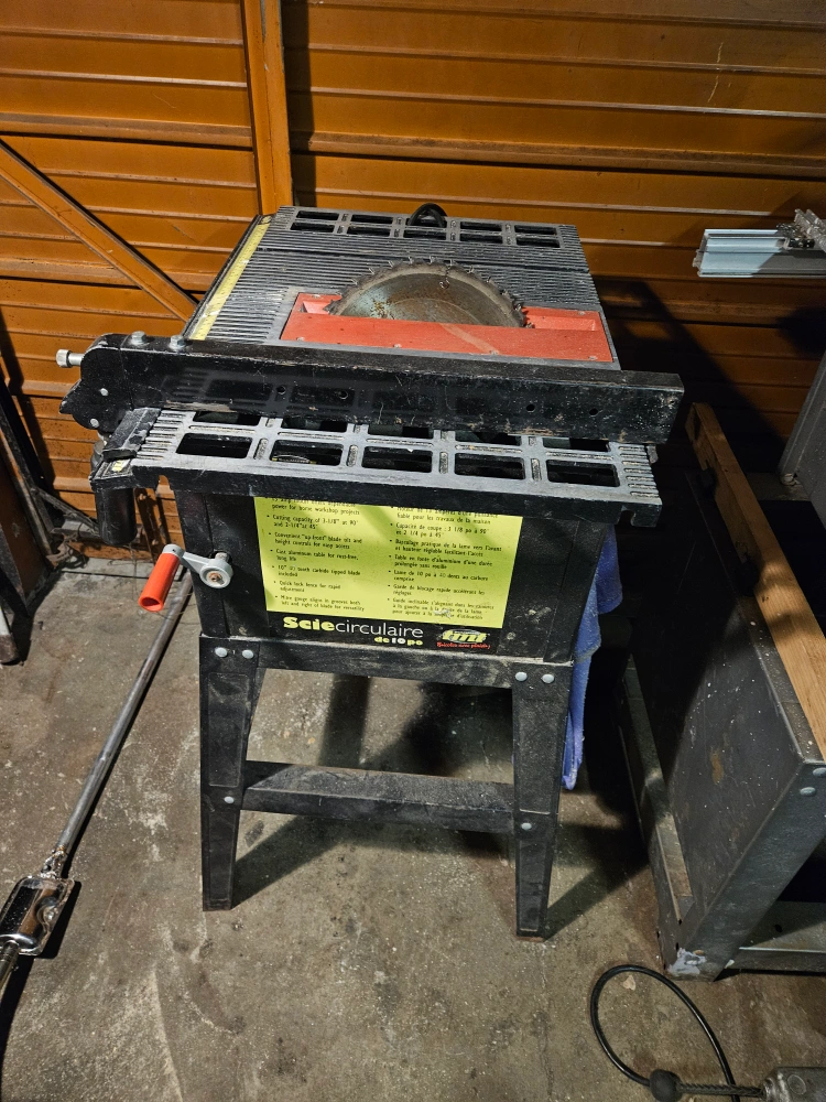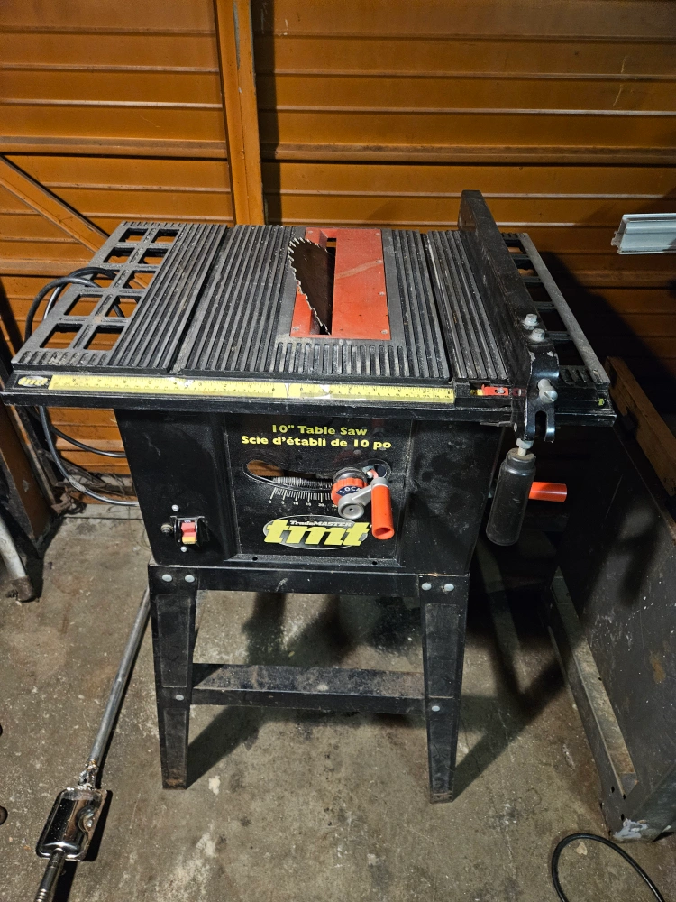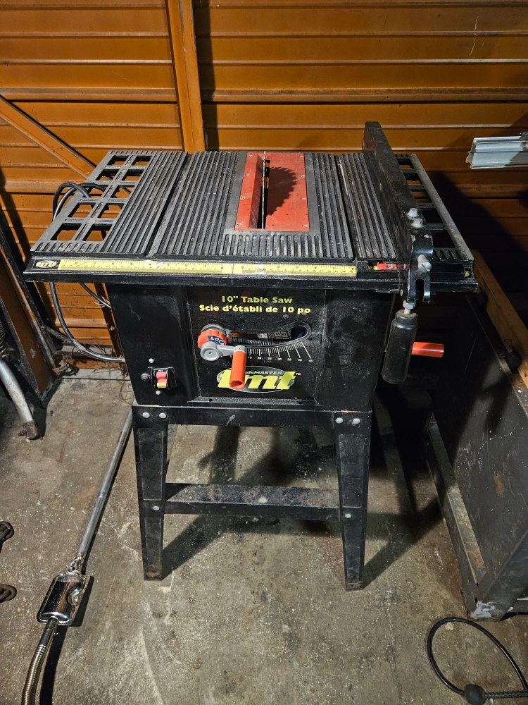 Selling a Mastercraft 10" table saw. It's in good condition and ready for your next project! The saw is sturdy and reliable . Can't find the miter slide sorry