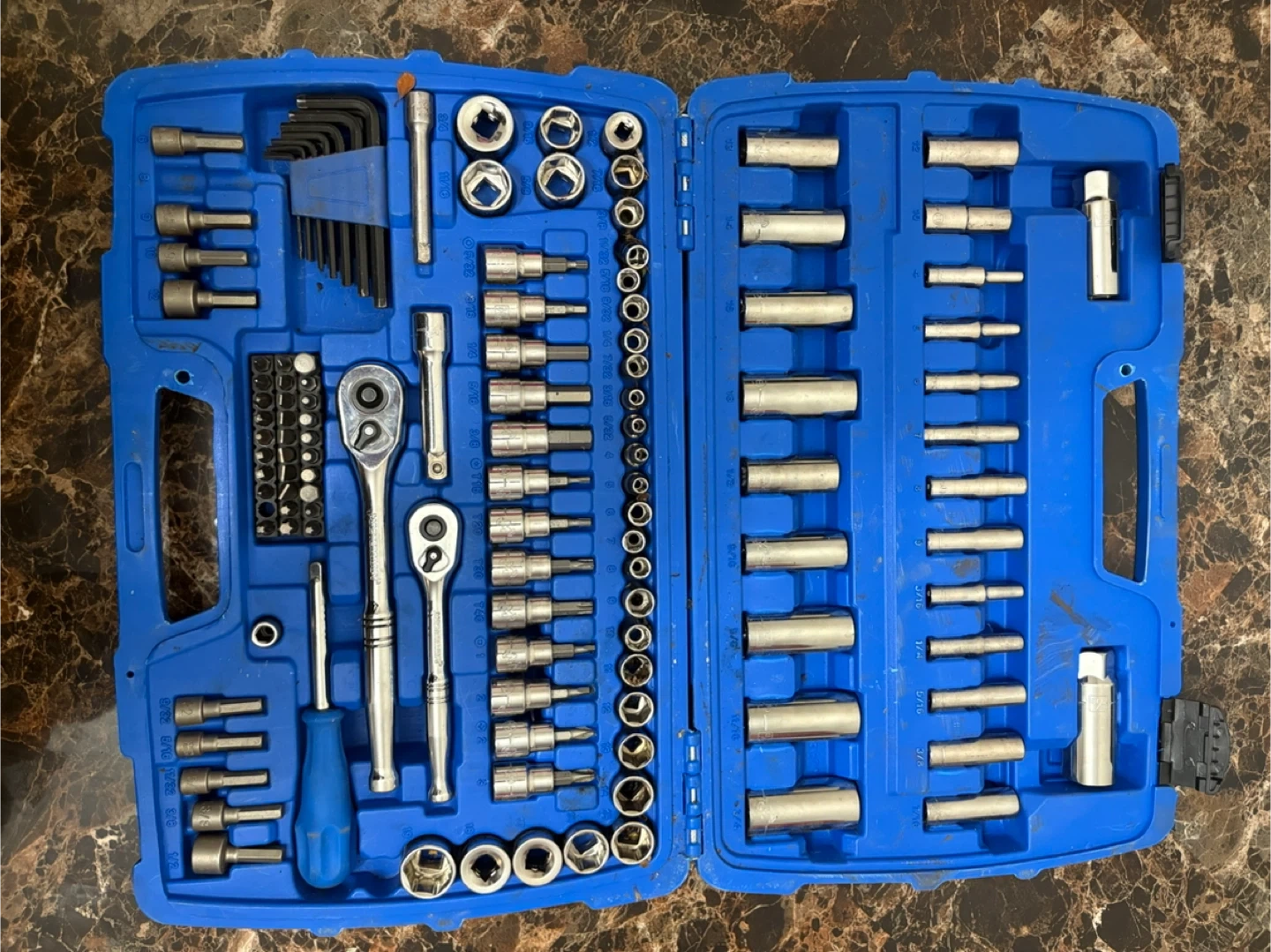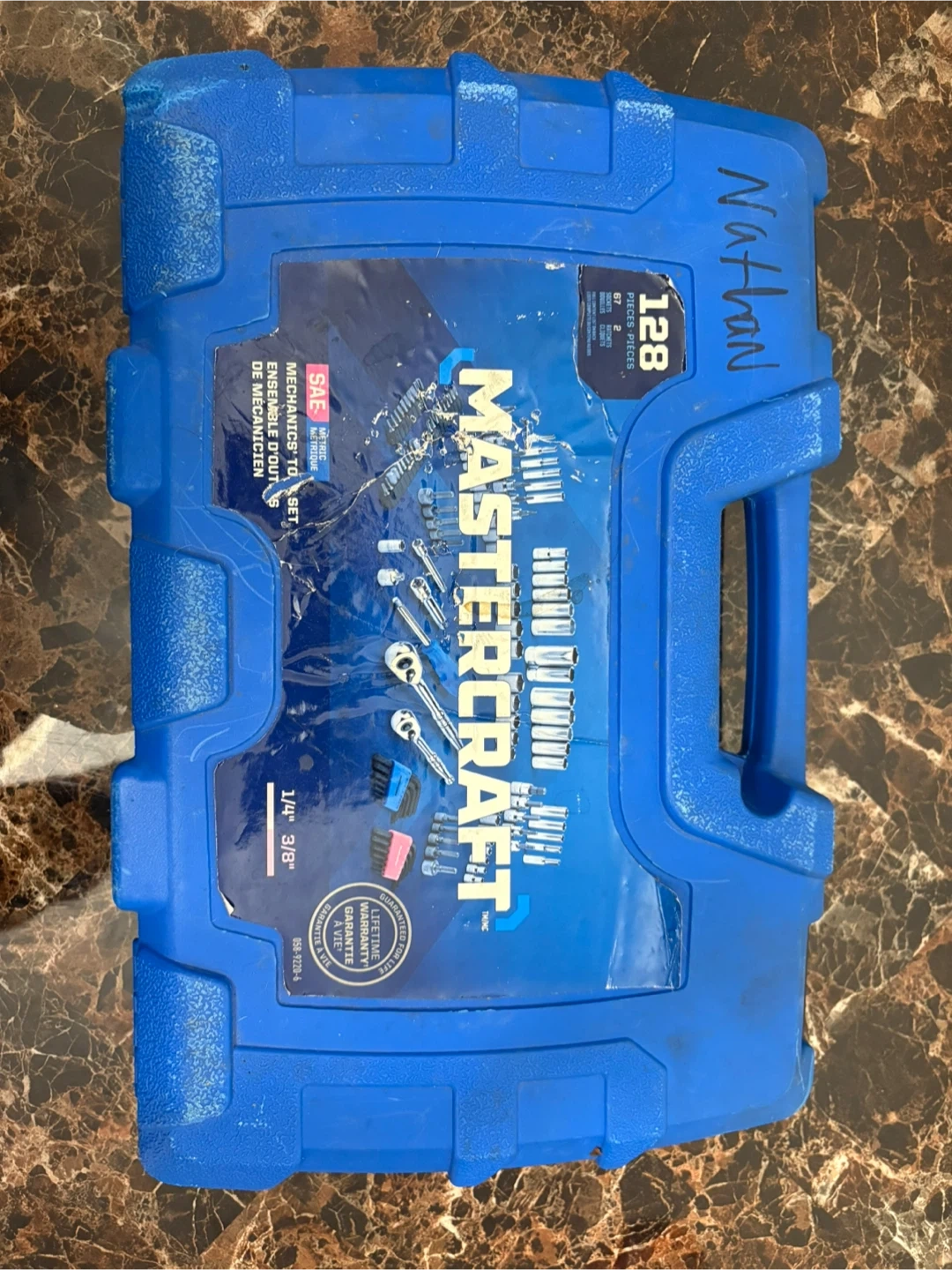 10Selling a Mastercraft 128 piece mechanics tool set. This set comes in a blue case and includes a variety of sockets, wrenches, and other essential tools for any DIY project or automotive repair. Great for beginners or experienced mechanics alike!