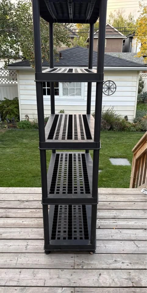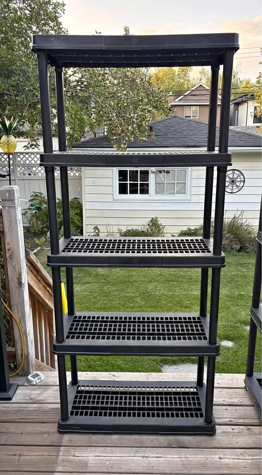 Mastercraft Adjustable 5 Shelf Resin Storage Rack/Shelving Unit - 36 x 18 x 72 inches Maximum Weight Capacity 1000lbs total Pick up in Altadore SW Pet & Smoke free home Made in Canada The Mastercraft 5-Shelf Resin Rack is the ultimate solution for your storage needs. With five adjustable shelves, this versatile shelving unit allows you to customize the height to accommodate taller or oddly shaped items. Its durable resin construction ensures long-lasting performance, making it ideal for storing a wide range of tools, equipment, and materials. Whether you're organizing your garage, workshop, or utility room, this adjustable shelving unit helps you maximize space and keep everything in order.