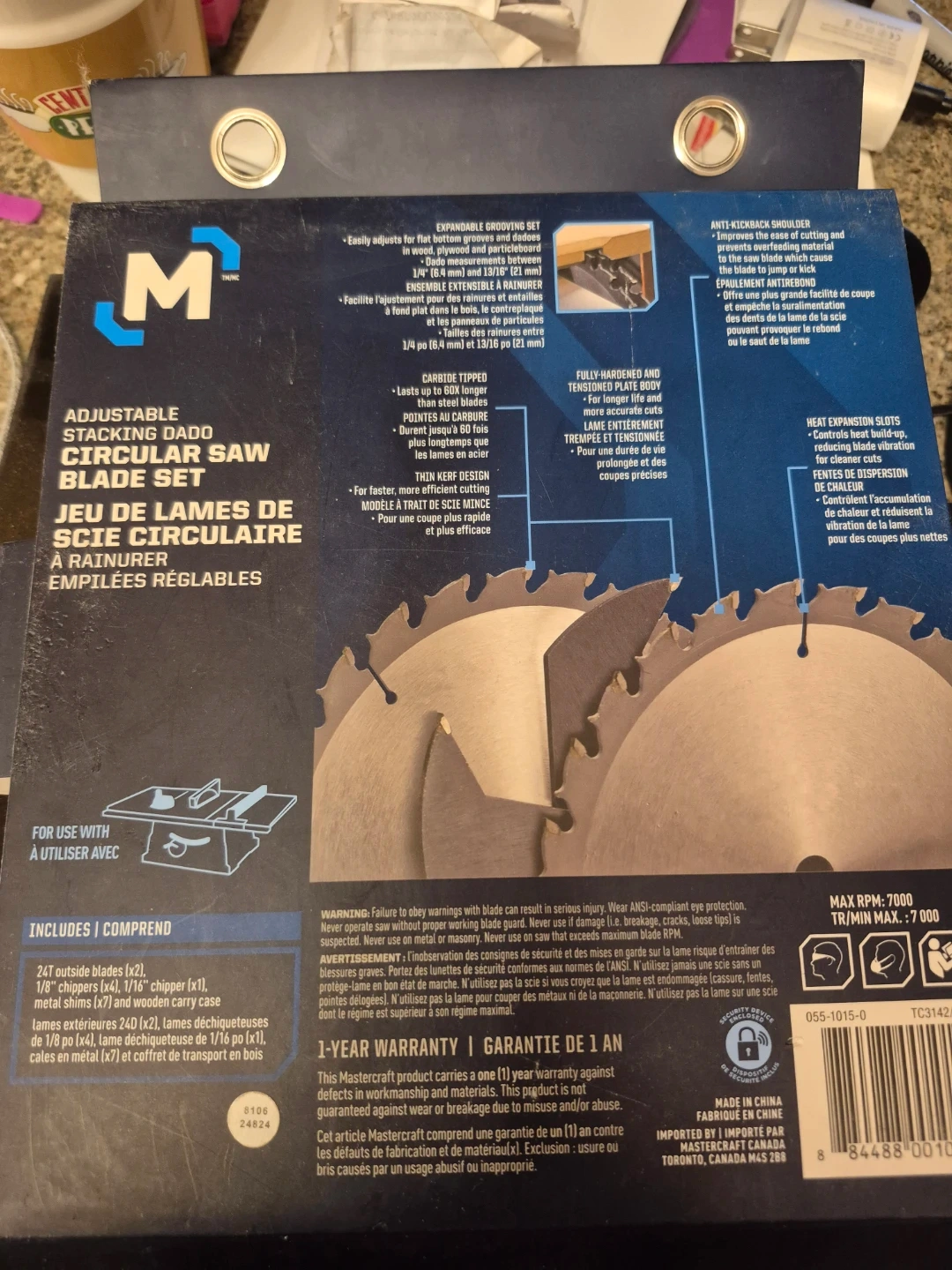 10Selling a brand new Mastercraft 8" Adjustable Stacking Dado Circular Saw Blade Set! This set is designed for flat bottom grooves in wood, plywood, and particleboard. It includes 24T outside blades, 1/8" chippers, and a carrying case. Max RPM is 7000. Comes in the original box. Missing the 7 metal shims so discounted due to that. Asking $60