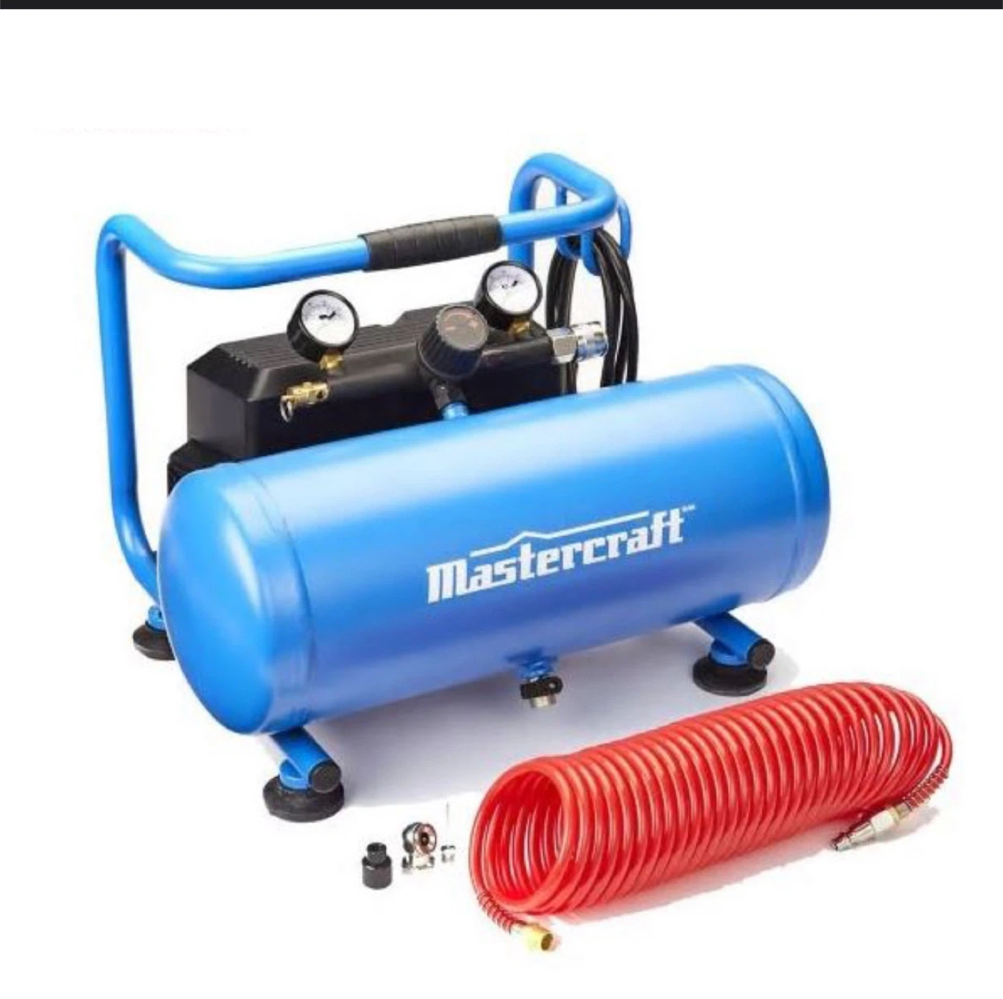 Selling a Mastercraft air compressor in blue. Rarely used brand new. Just 1 year old.