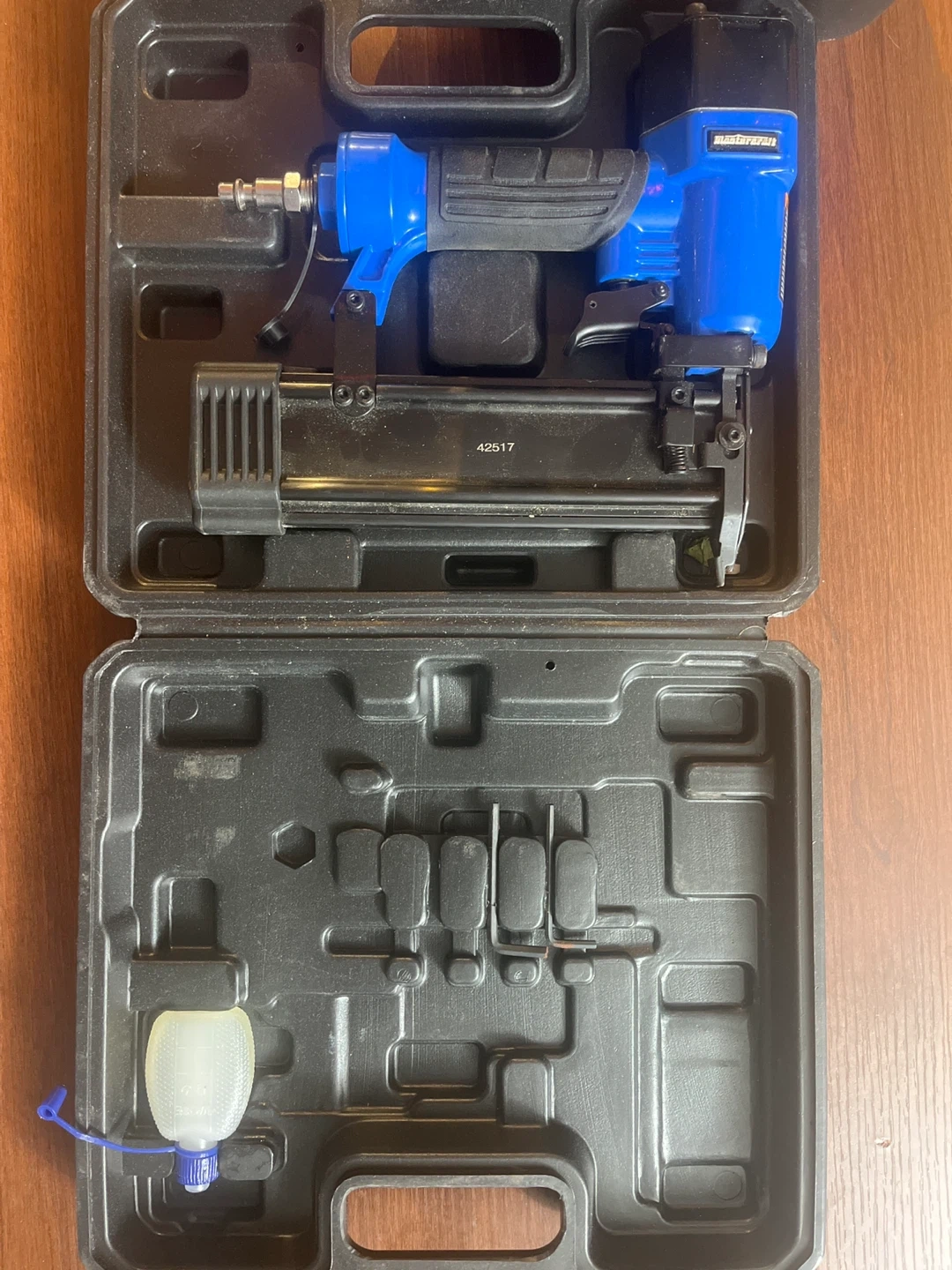Selling a Mastercraft nail gun. It comes with its original carrying case. Great for home projects or professional use! It's in good working condition and ready to go