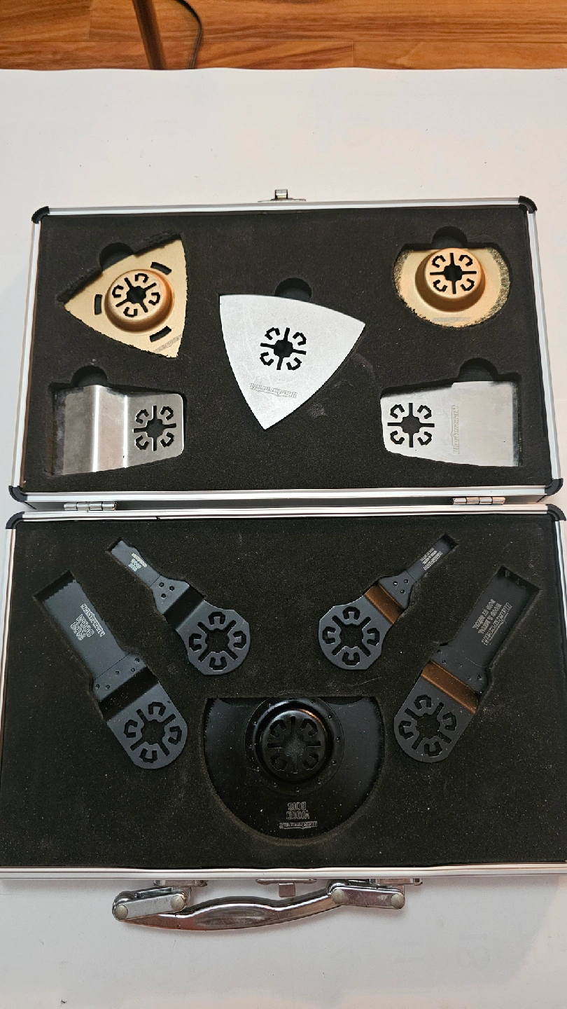 Selling a Mastercraft oscillating multi-tool blade set. It comes with a variety of blades and a case for easy storage and organization