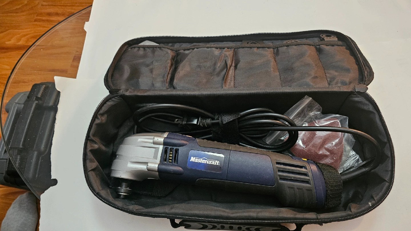 Selling a Mastercraft oscillating multi-tool. It comes with its original carrying case and accessories, including the power cord and sanding pads. Great for various DIY projects around the house!