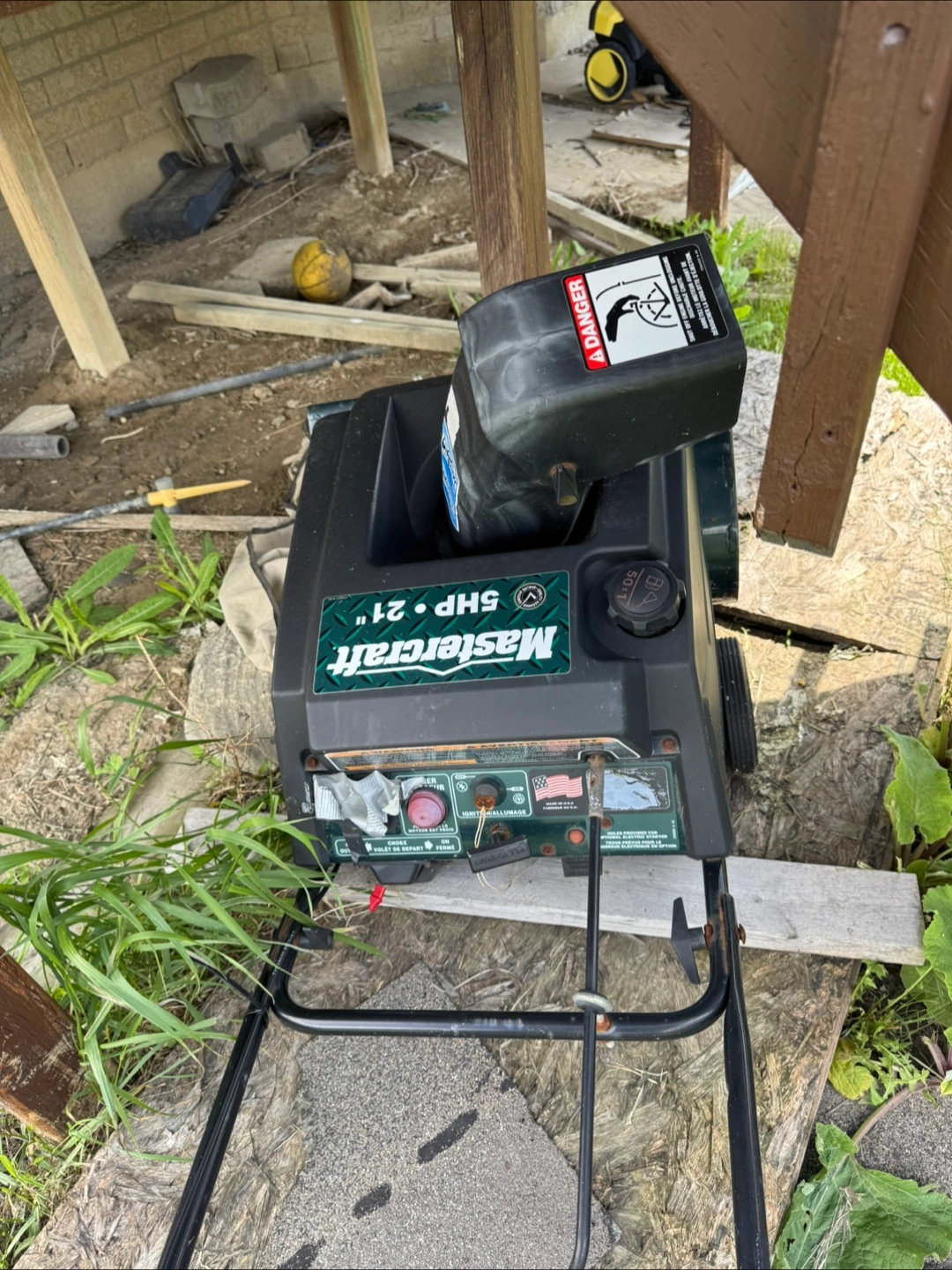 Used Mastercraft SHP 21" snowblower. Needs some TLC. Great for clearing driveways and walkways. Sold as is.