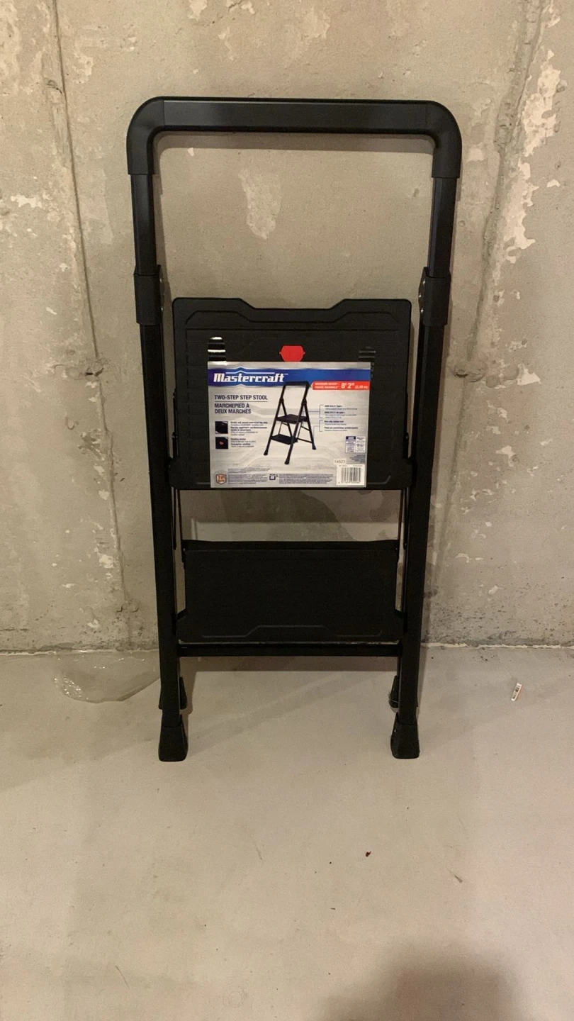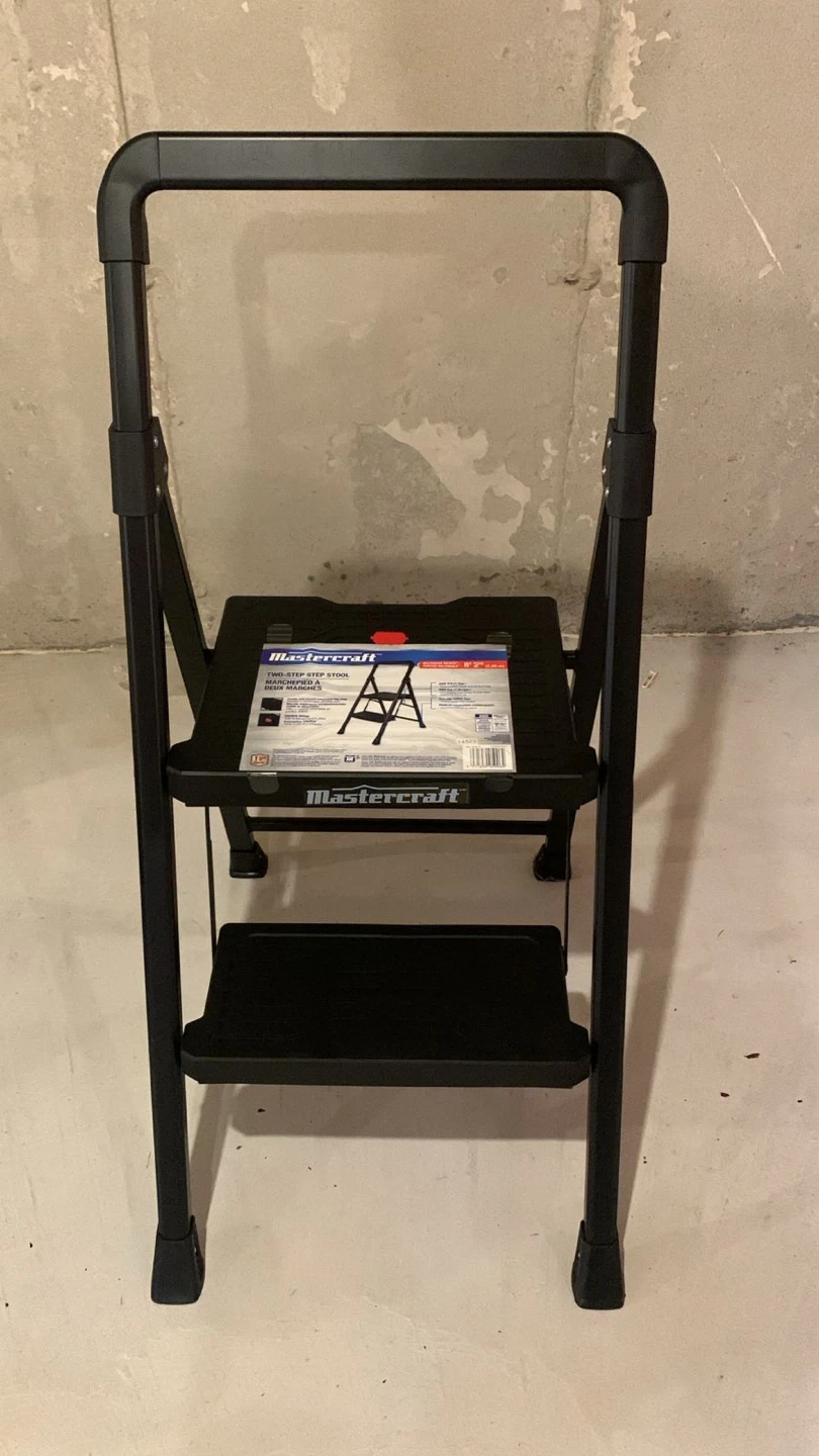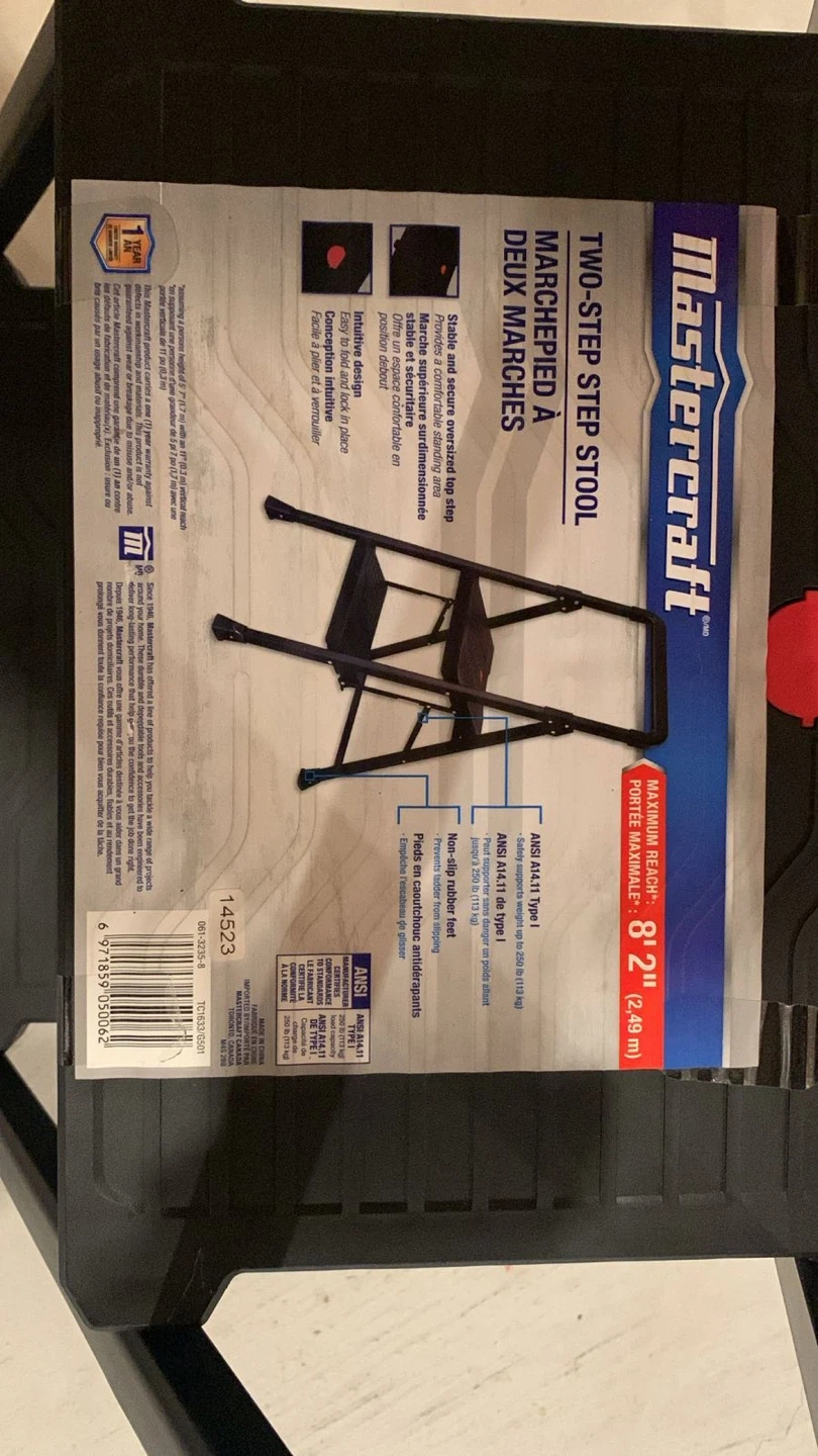 71Selling a Mastercraft two-step step stool! It has a stable and secure oversized top step for comfortable standing. The maximum reach is 8 ft 2 in (2.49 m).
