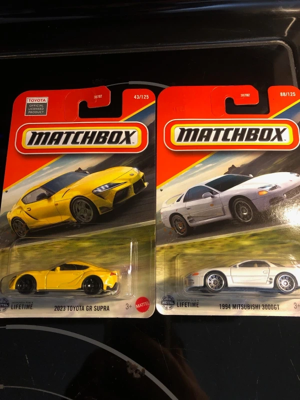 101Selling two Matchbox cars: a 2023 Toyota GR Supra and a 1994 Mitsubishi 3000GT! Both are in their original packaging and ready for a new home