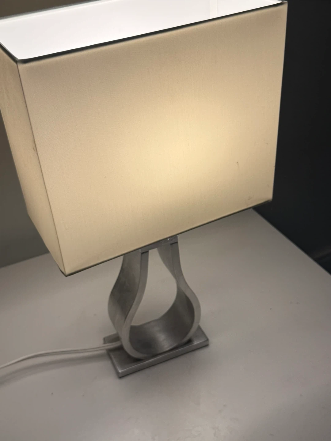 20Selling a pair of matching table lamps! They're in great condition and would look lovely in any room. They feature a white shade and a silver-tone base. Perfect for bedside tables or a living room setup. Lightbulbs included! 💡