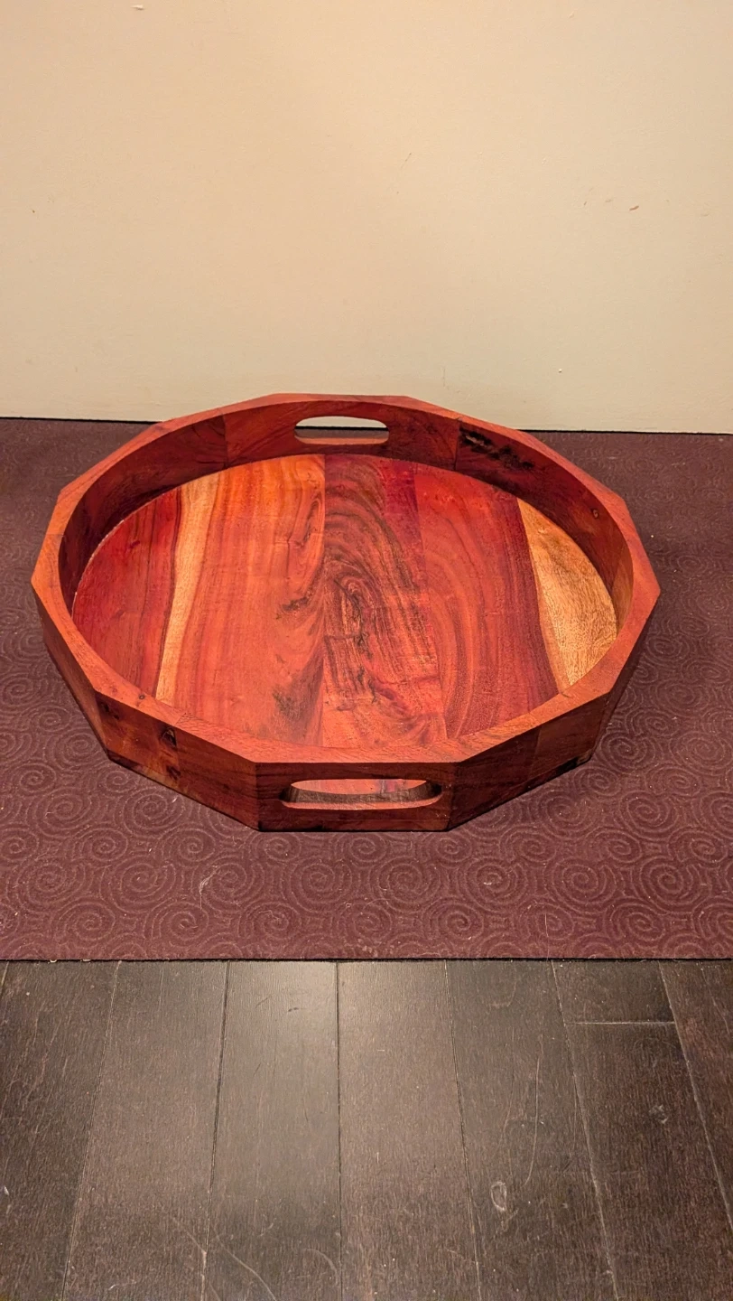 Octagonal Wooden Serving Tray with Handles