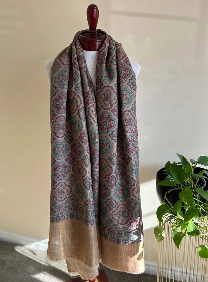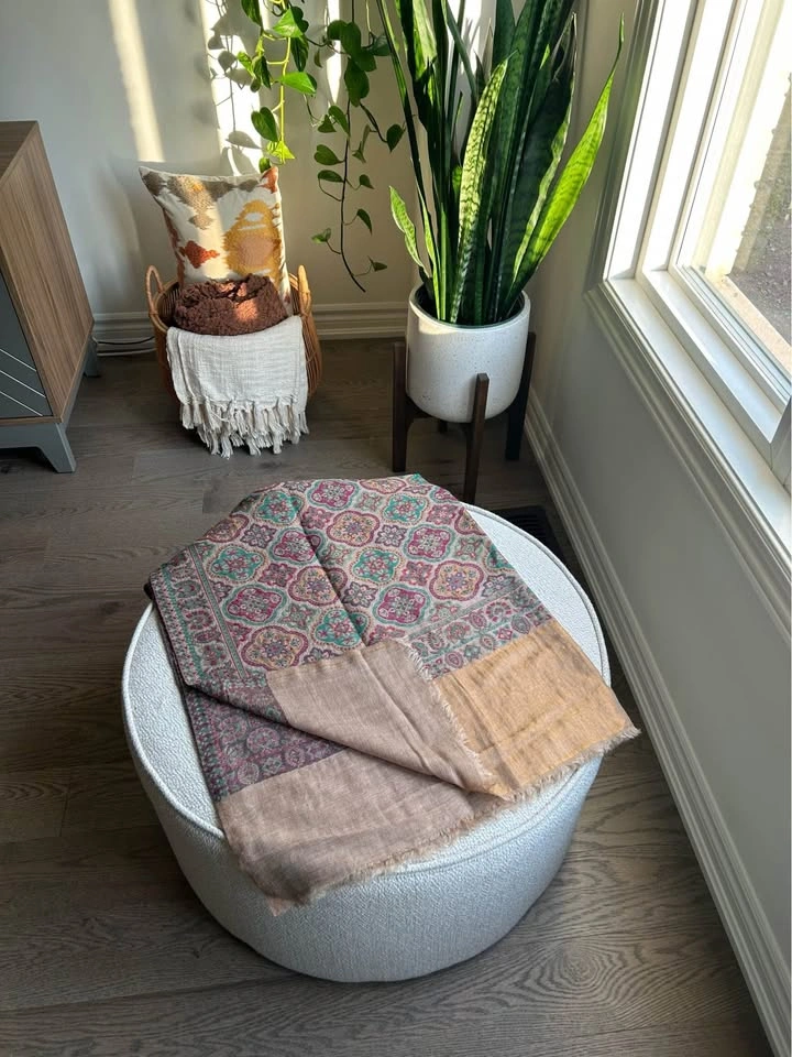 This classic Matka Shawl is made from soft, handwoven Matka silk or a silk-pashmina blend, offering a natural textured look. It's soft, breathable, and warm, with a classy texture and graceful fall.