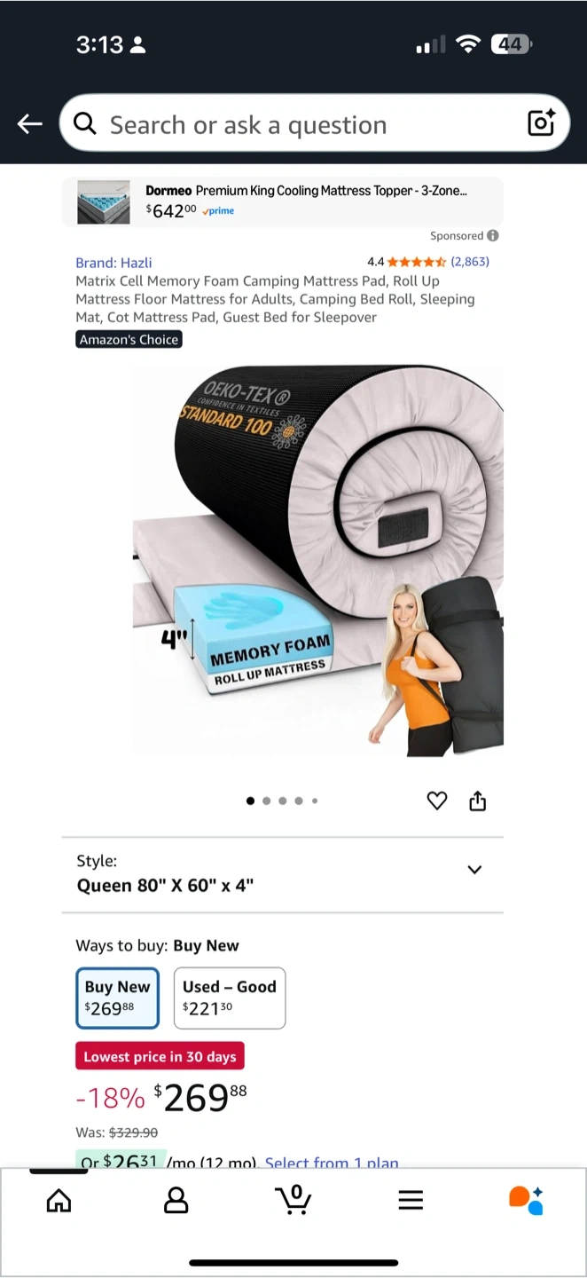 Show allMatrix Cell Roll Up Memory Foam Mattress - Queen
