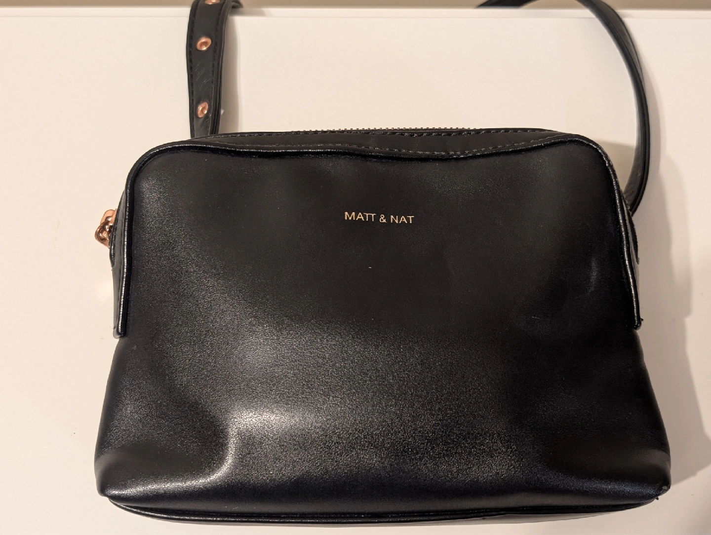 Matt & Nat crossbody bag in black! It's in great condition and perfect for everyday use. The bag features a sleek design with adjustable strap and a compact size for carrying essentials. Great for anyone looking for a versatile and chic accessory!