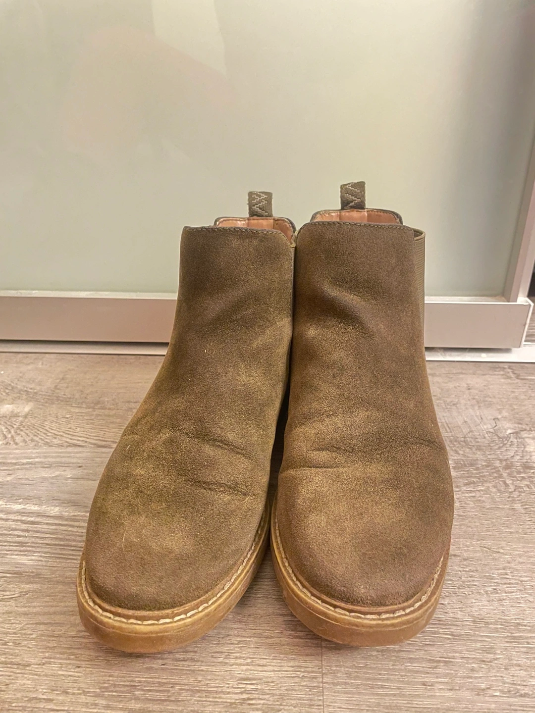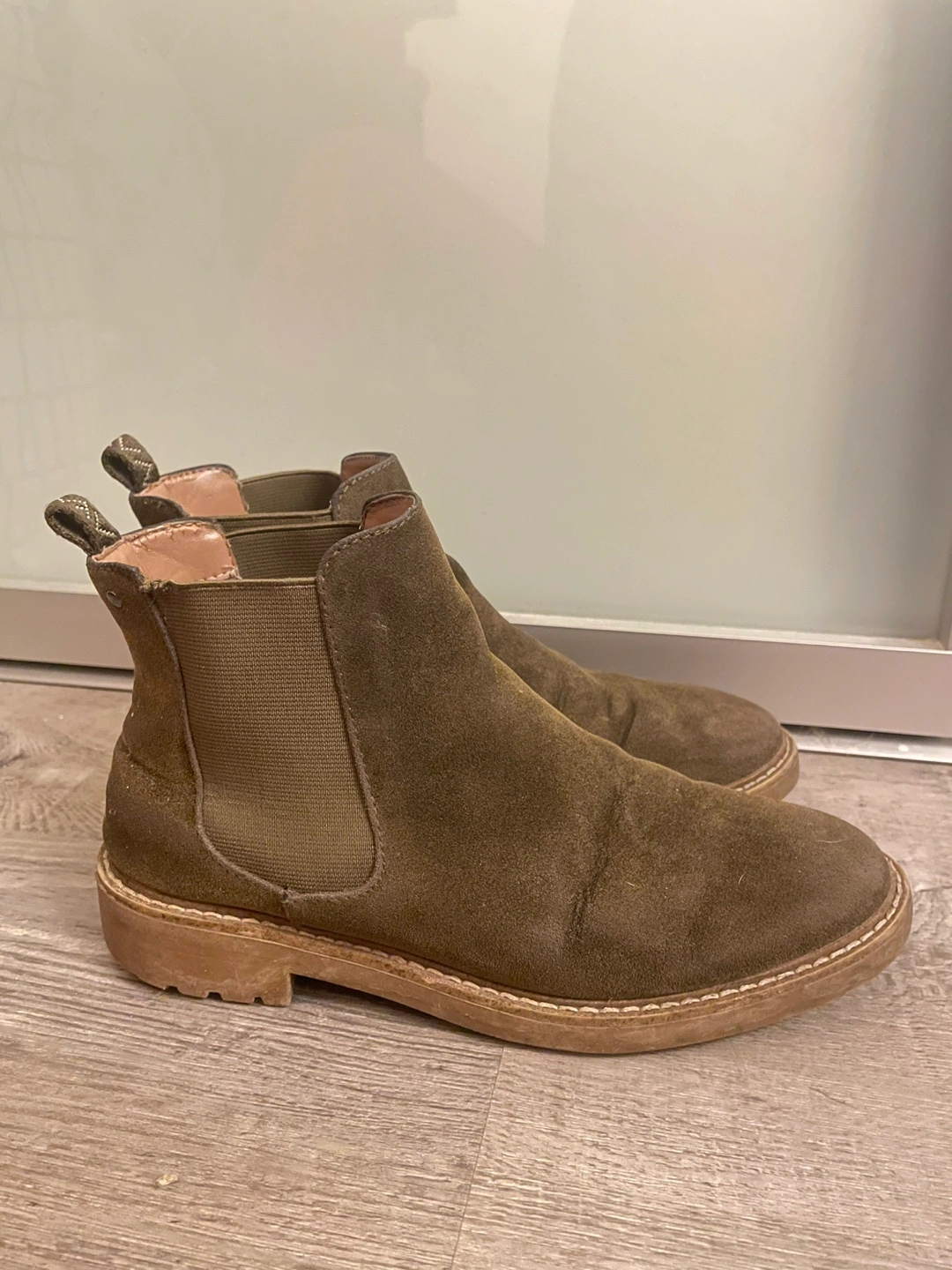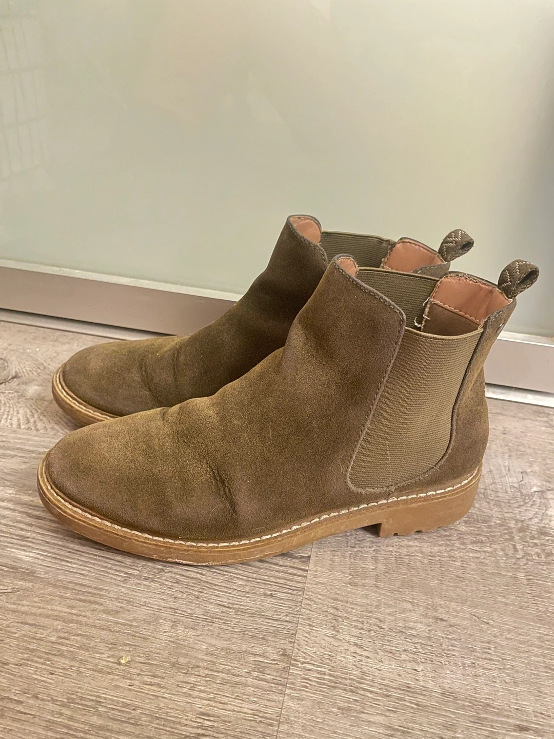135Women's olive green suede Chelsea boots. Low block heel. Good condition, gently used. Size 7. Great boots just a tad too big for me!