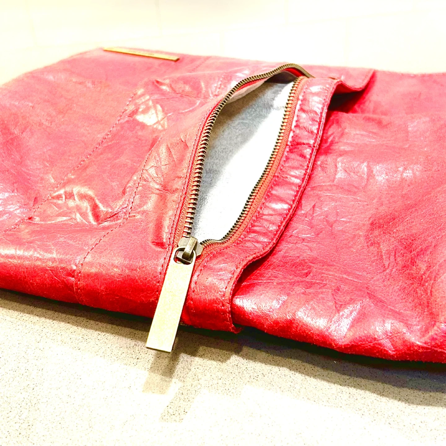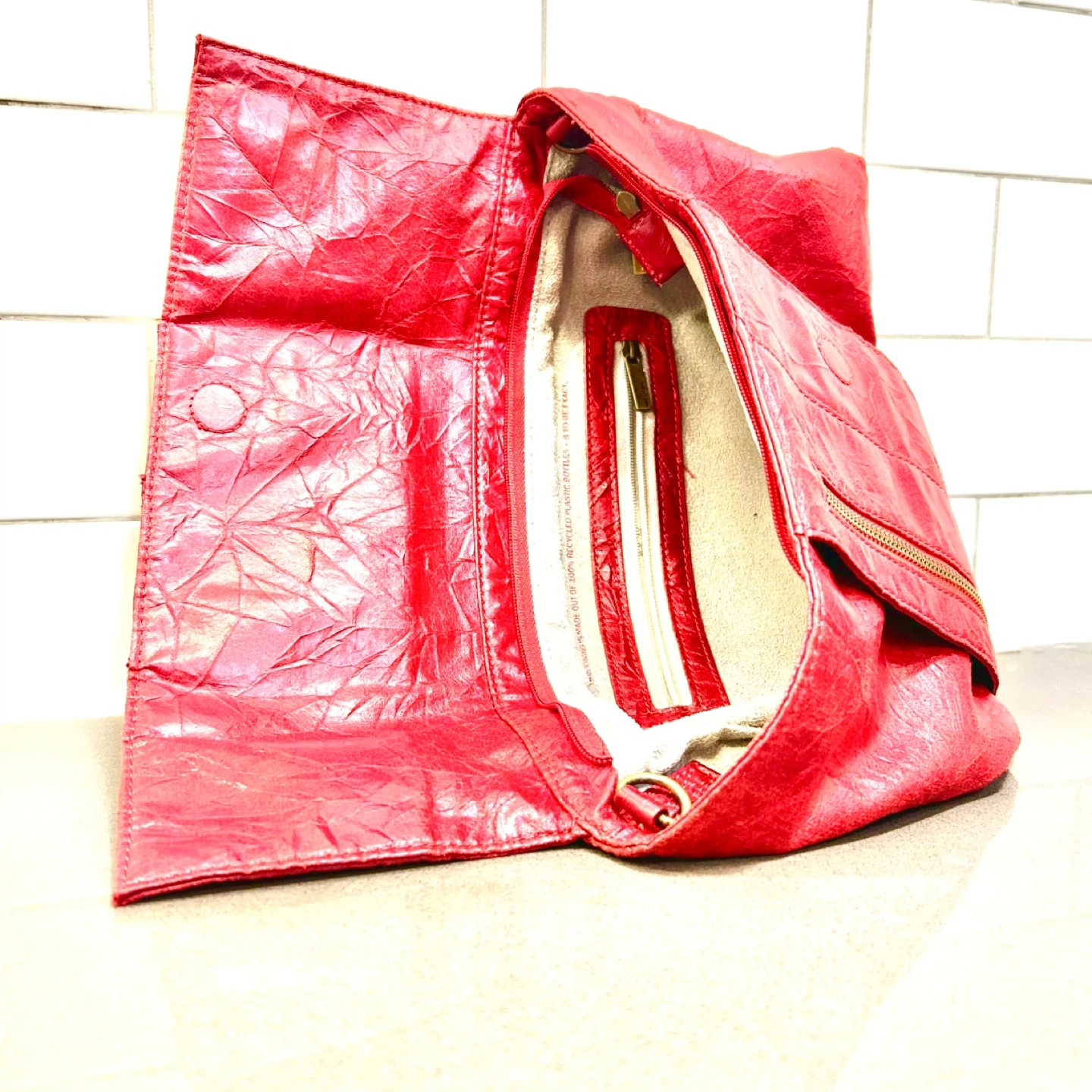 147This is a vibrant red clutch from Matt & Nat! The lining is made out of 100% recycled plastic bottles. It's in great condition and ready for a new home