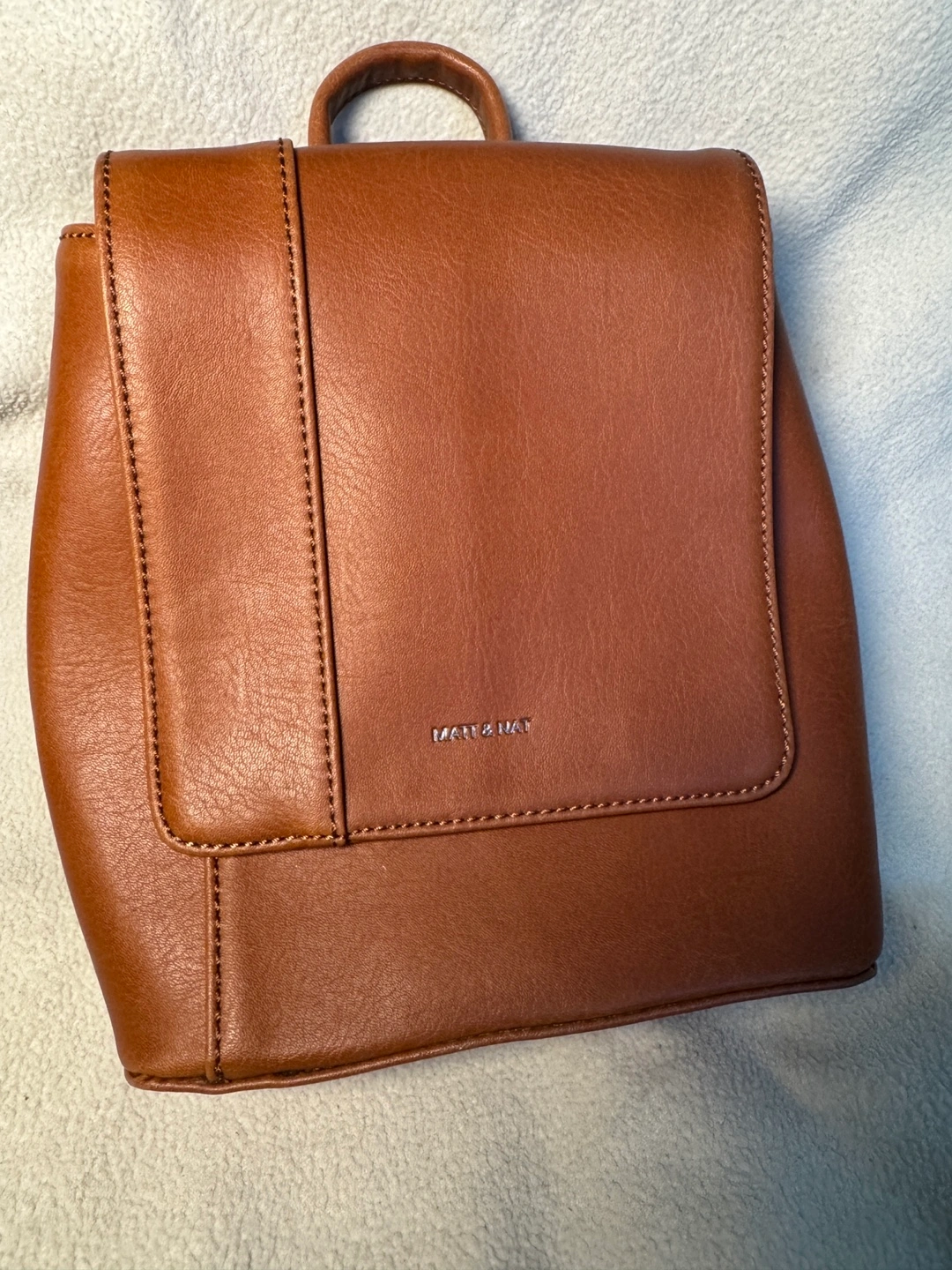 122Sold out and hard to find - selling my gently used but in excellent like new condition Matt & Nat vegan leather backpack in tanned brown. It's a stylish and practical bag, perfect for everyday use. The backpack has no signs of wear other than not being stuffed with paper to make it look full for the photos! In excellent condition! Original purchase price was $140 plus tax.