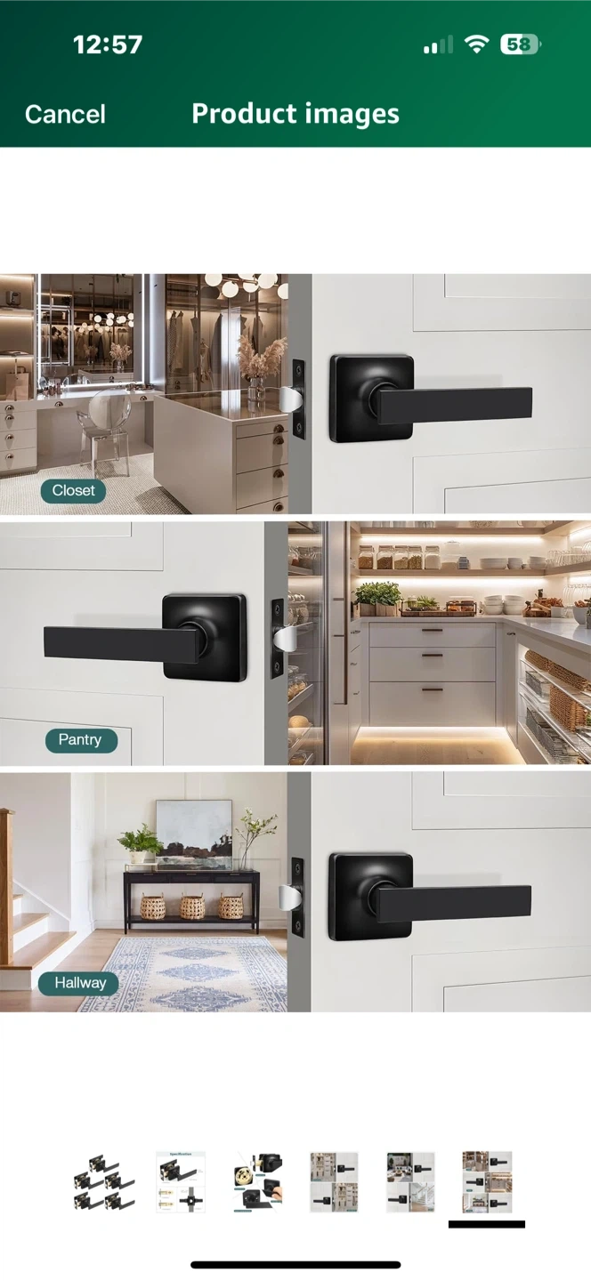 Selling a brand new matte black square door lever handle set! This set includes all the necessary components and accessories. Perfect for adding a modern touch to your closet, pantry, hallway, or any interior or exterior door
