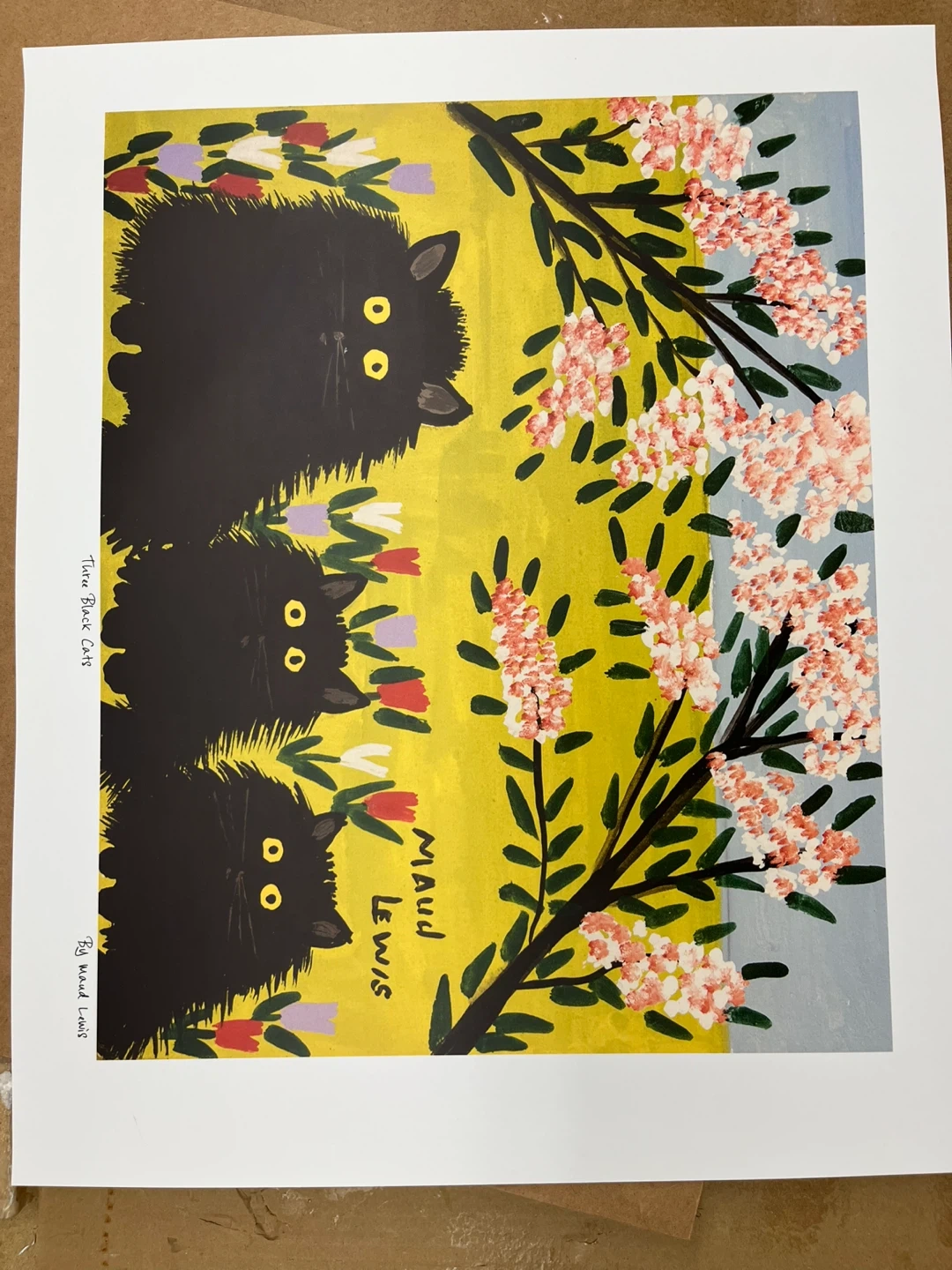 Selling a print of Maud Lewis's 'Three Black Cats' painting! Nova Scotia folk artist . It's a Giclee number limited edition print.Perfect for adding a touch of folk art to your home Image size 20x24 Outside size 24x28