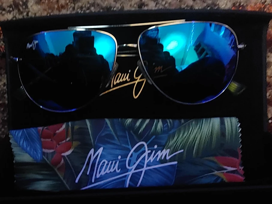 Selling a pair of Maui Jim sunglasses. They come with the original case and cleaning cloth. The lenses have a nice blue tint. Great for sunny days!