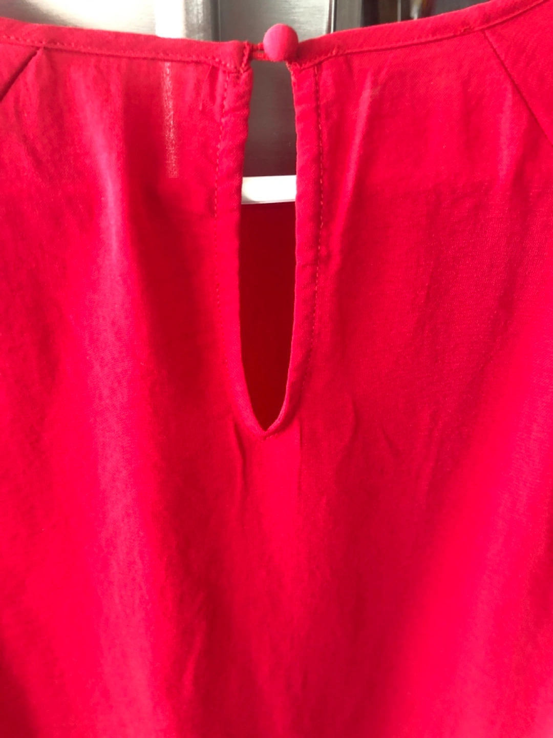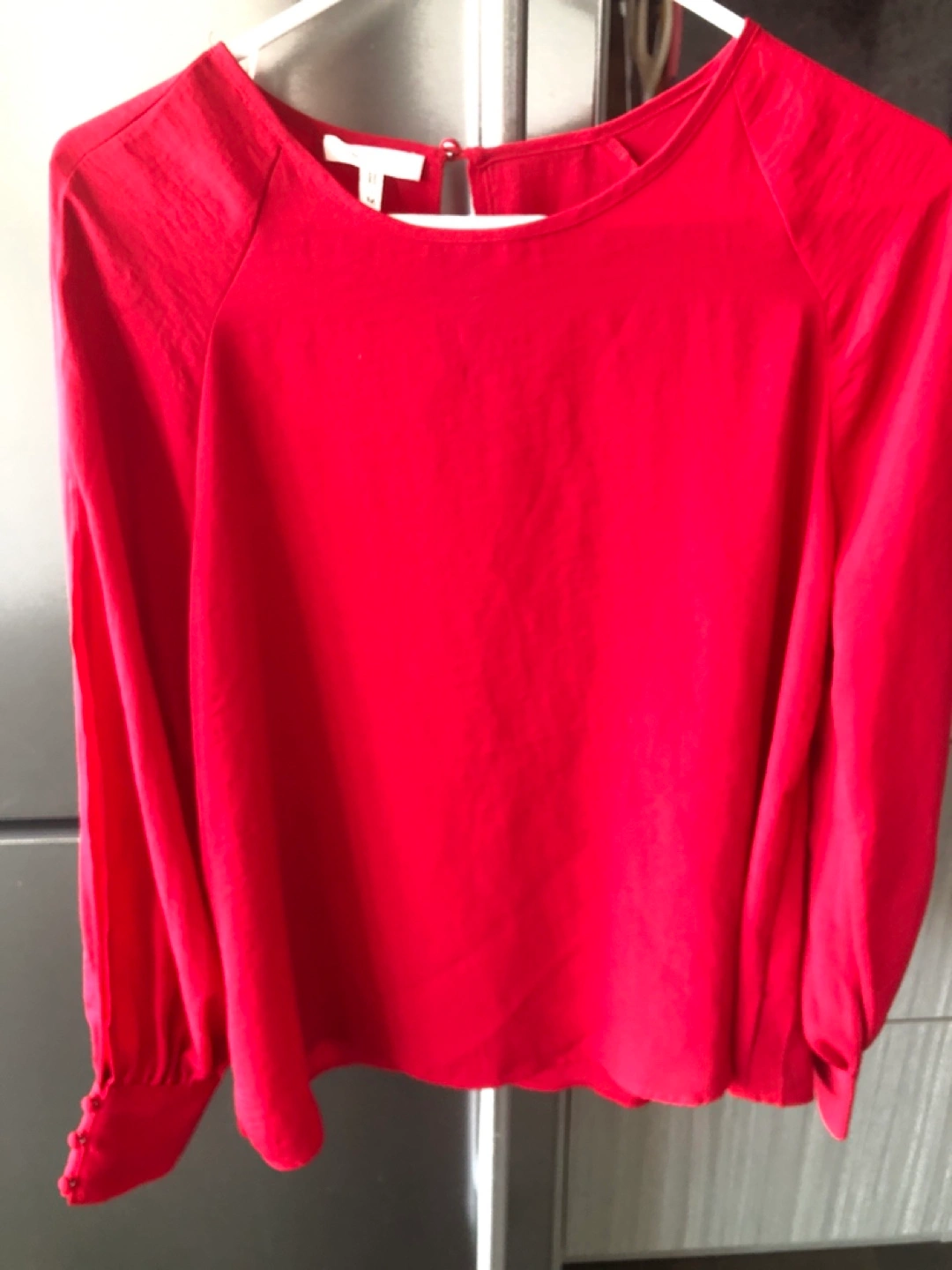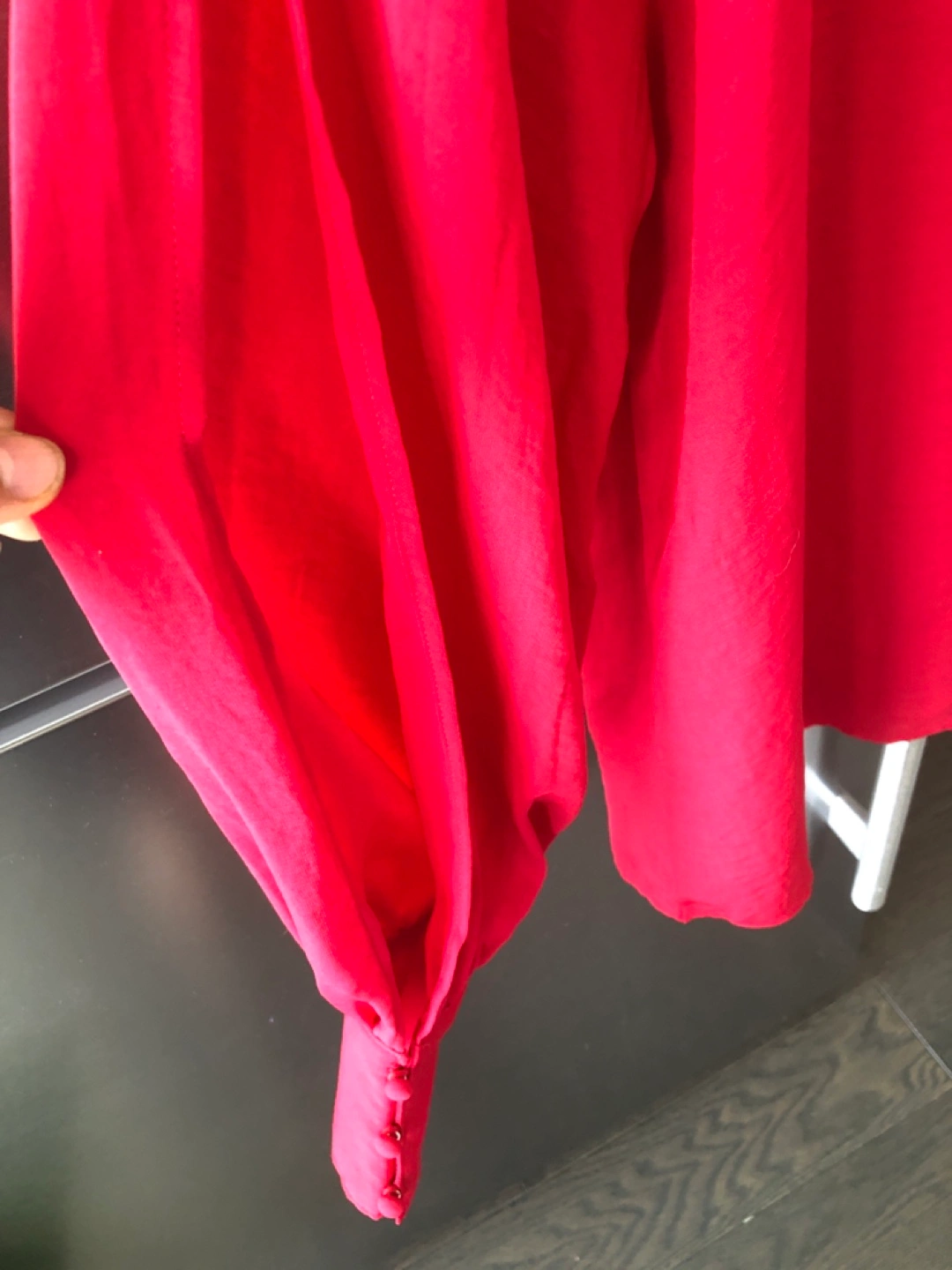 Brand new, Long sleeve red blouse. Button cuffs and slit in sleeves. Round neckline. Keyhole back detail. Size medium. Made in Vietnam.