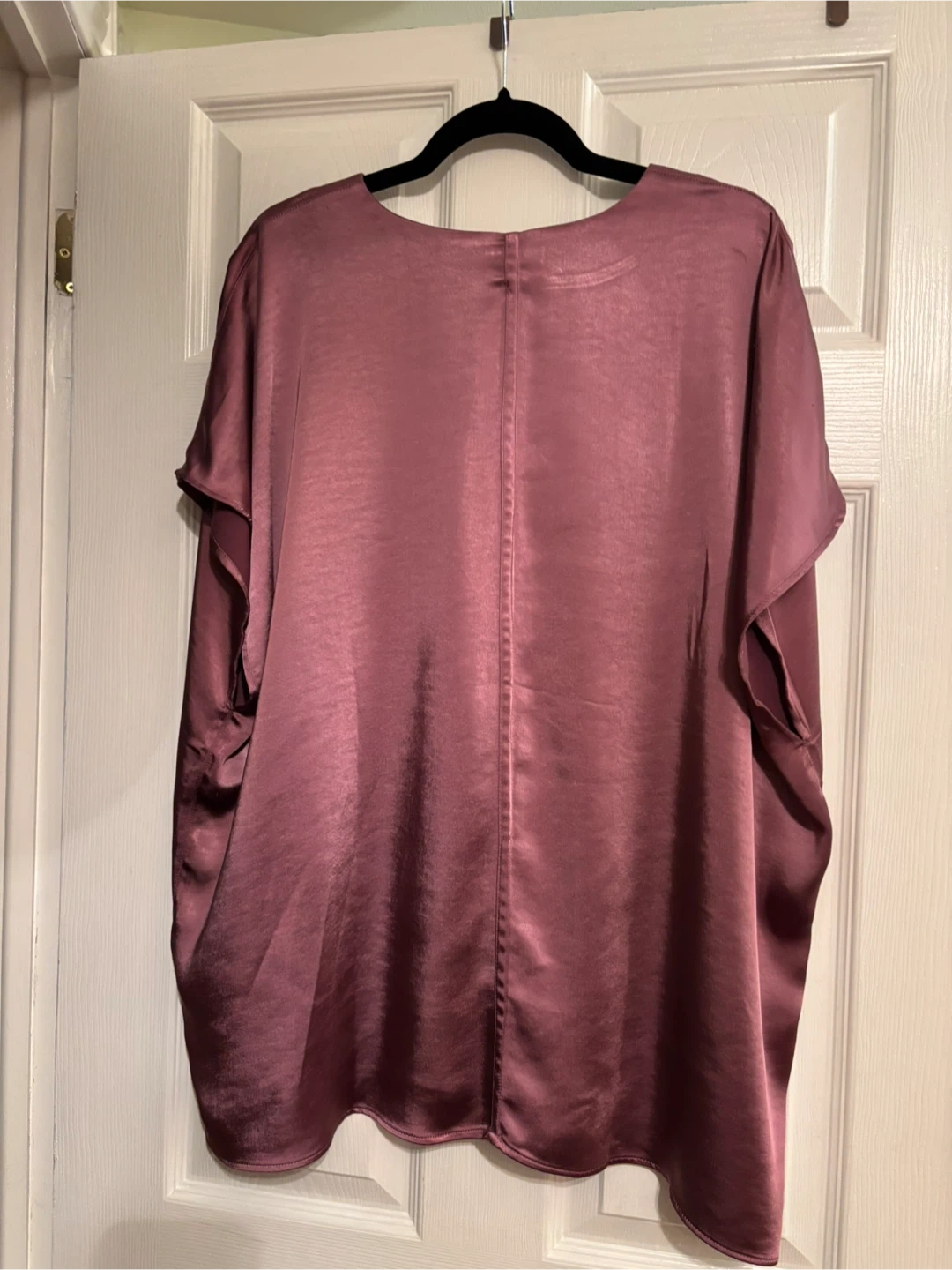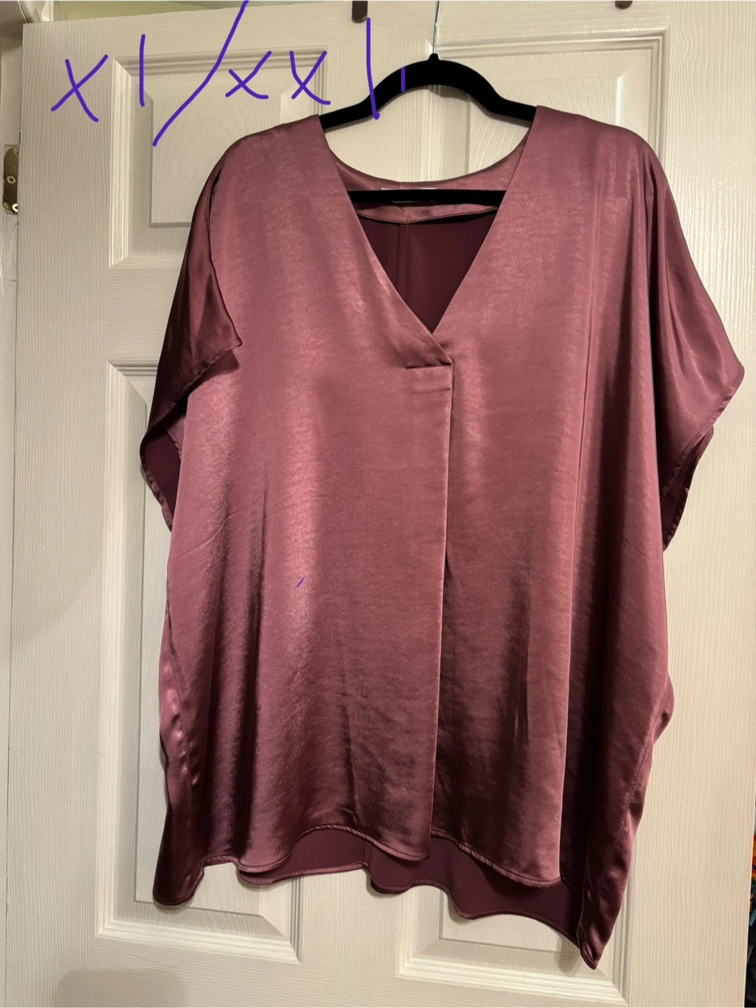 123Selling a lovely mauve-coloured satin blouse, sized XL/XXL. It’s new without tags and ready for a new home! It’s labelled L but fits larger.