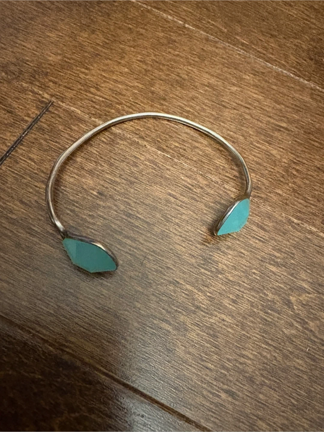 Stella & Dot Silver-toned cuff bracelet with two faceted turquoise-coloured stone accents. It's a stylish accessory for everyday wear. This bracelet is open at the front for easy adjustment.