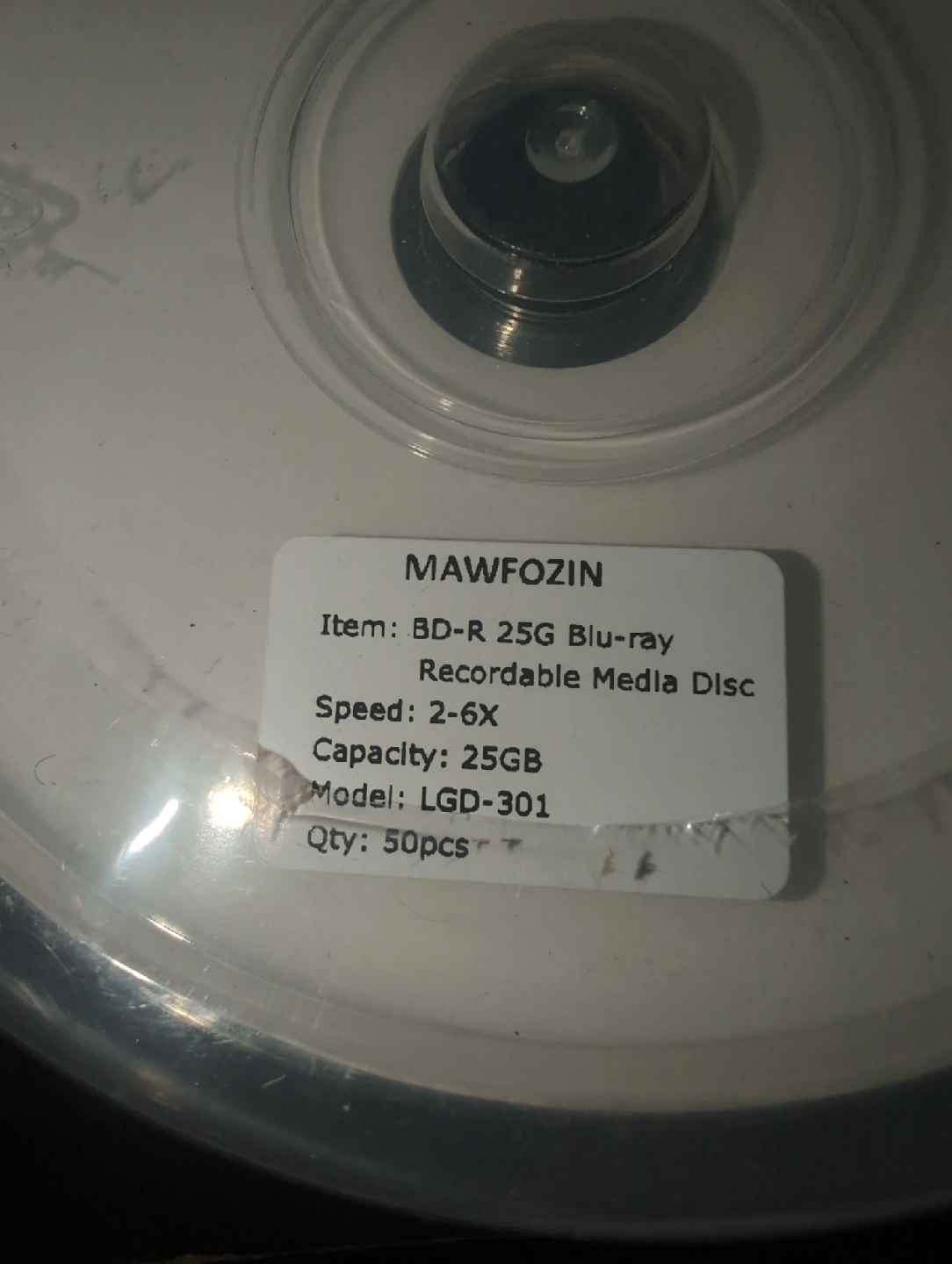 I bought this by mistake. I thought it was DVDs. I've never owned a Blu-ray burner. hopefully someone can use this. I can work with you on the price. Selling a spindle of MAWFOZIN BD-R 25G Blu-ray recordable media discs. - Speed: 2-6X - Capacity: 25GB - Model: LGD-301 - Quantity: 50pcs