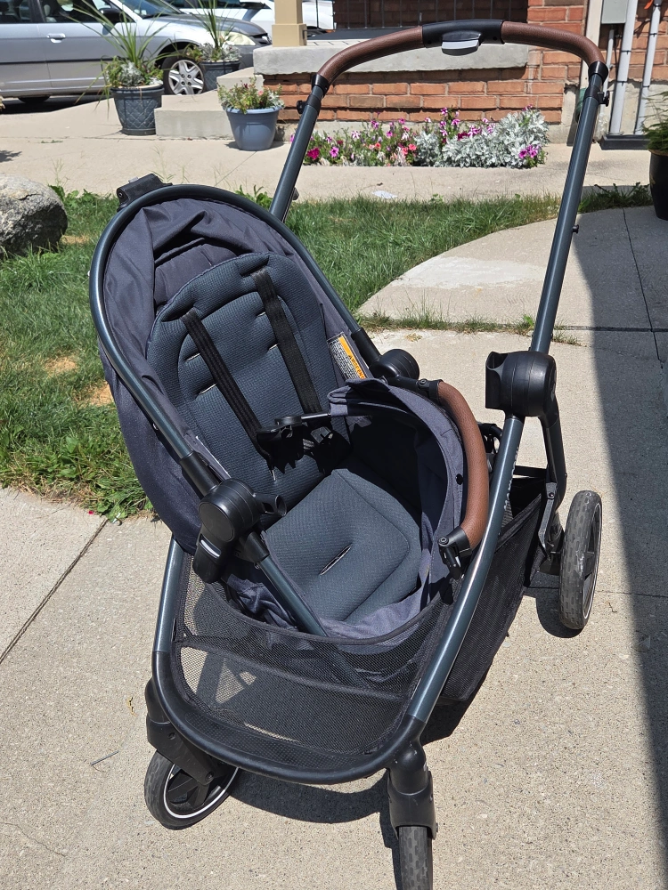 Selling a Maxi-Cosi Lila stroller in great condition! It features a spacious basket underneath for storage and a comfortable seat for your little one. The stroller is easy to maneuver and perfect for city strolls or park adventures. The canopy provides shade and protection from the elements. It's ready for a new family to enjoy! Please note carseat and base available & rain cover.