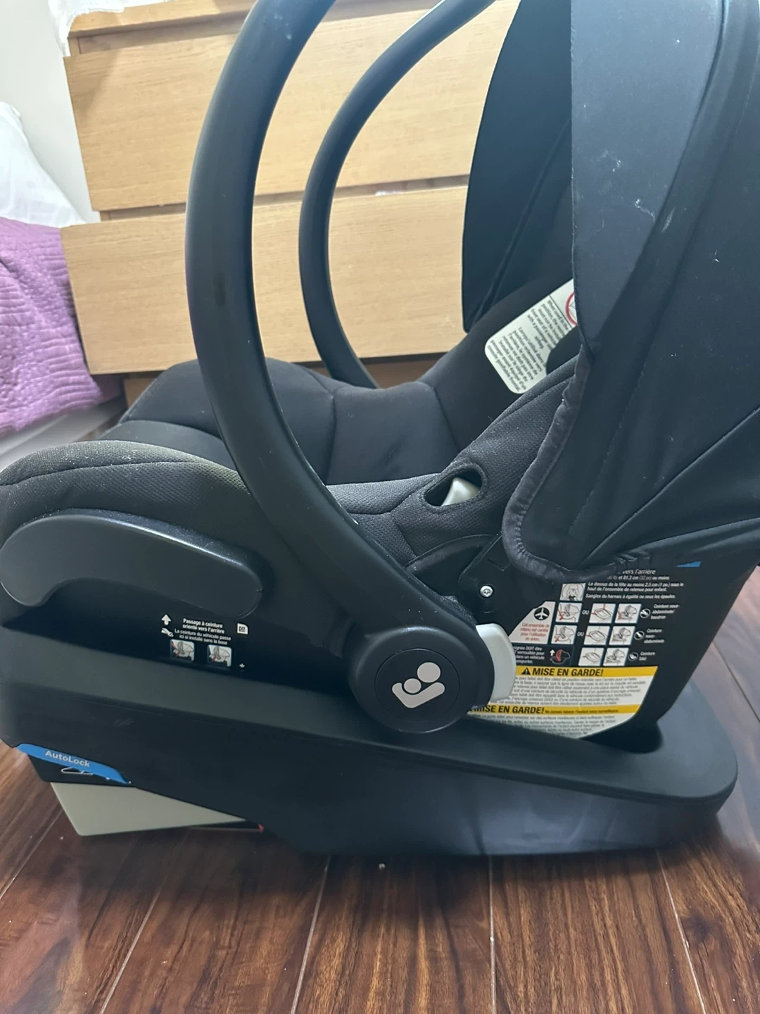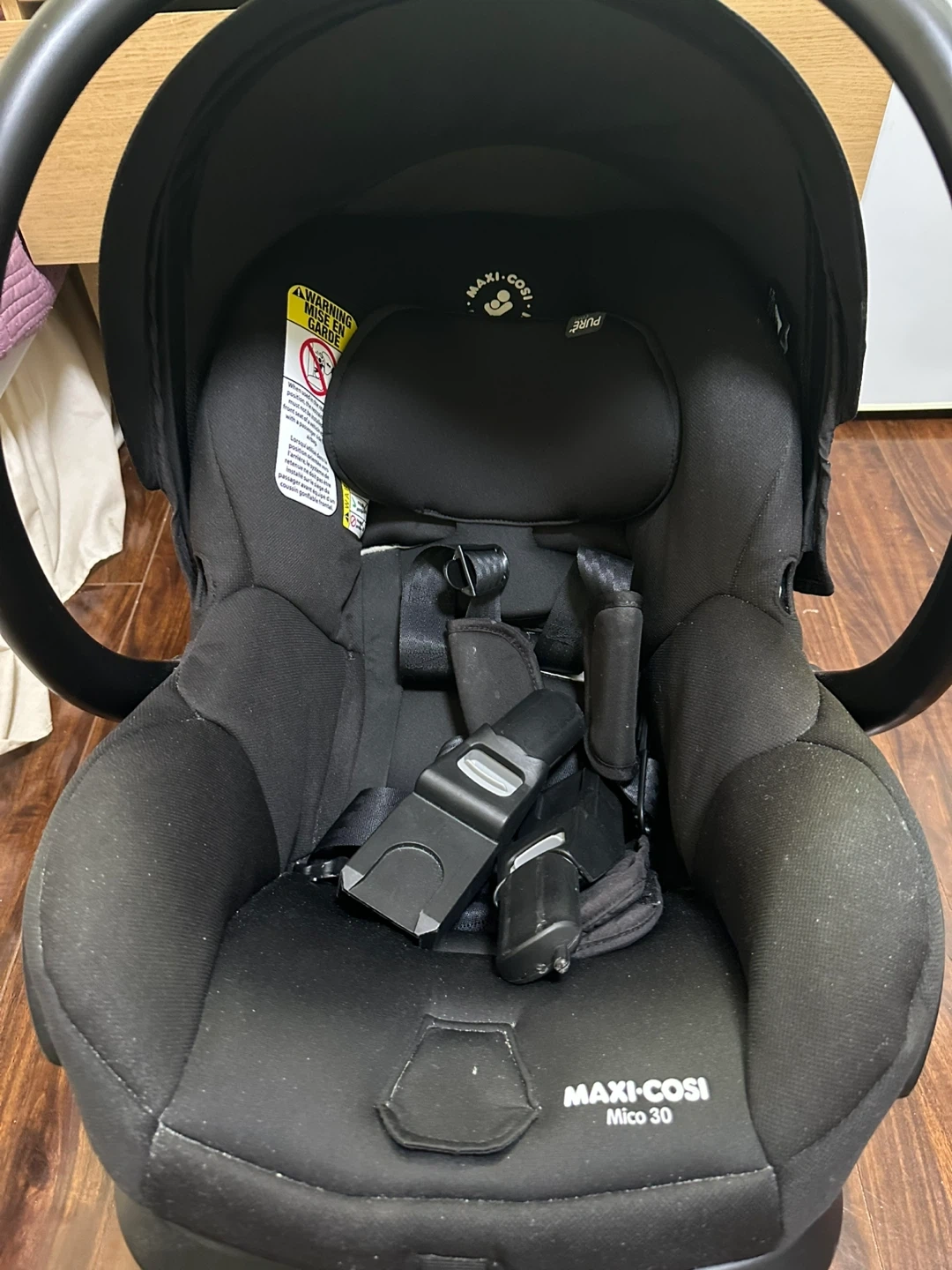 Selling a Maxi-Cosi Mico 30 infant car seat in black. It's in great condition and ready for a new little one. This car seat provides excellent safety and comfort for infants. Perfect for parents looking for a reliable and easy-to-use car seat! Manufactured in 2023
