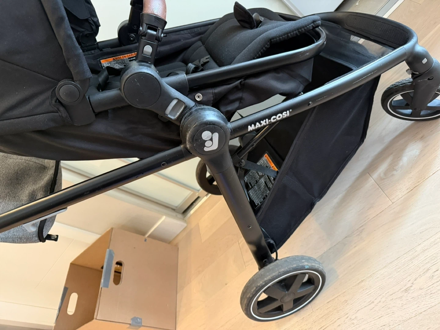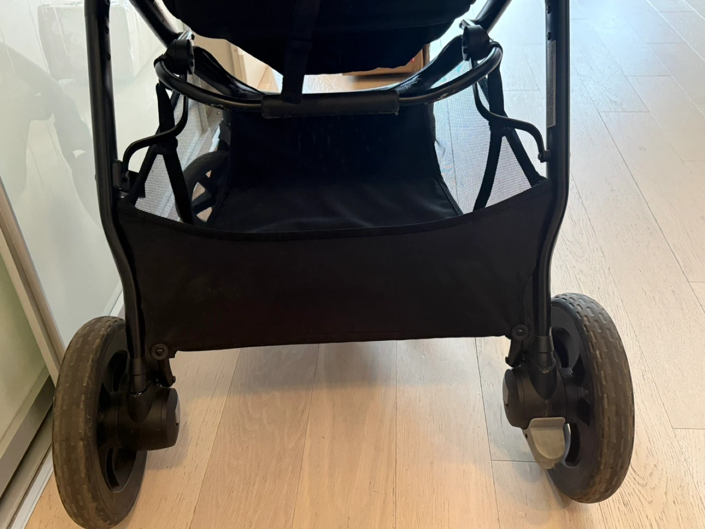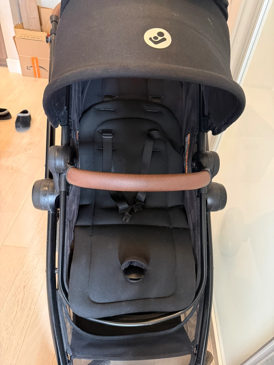 10Selling a used Maxi-Cosi stroller. It's in good condition and ready for a new family! It features a spacious storage basket underneath and a convenient organizer bag.