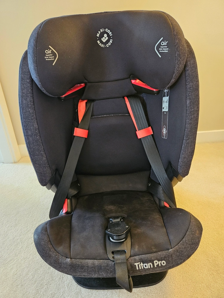 Selling a Maxi-Cosi Titan Pro car seat. It's in good condition and ready for a child. Perfect for keeping your little one safe and comfy on the road!