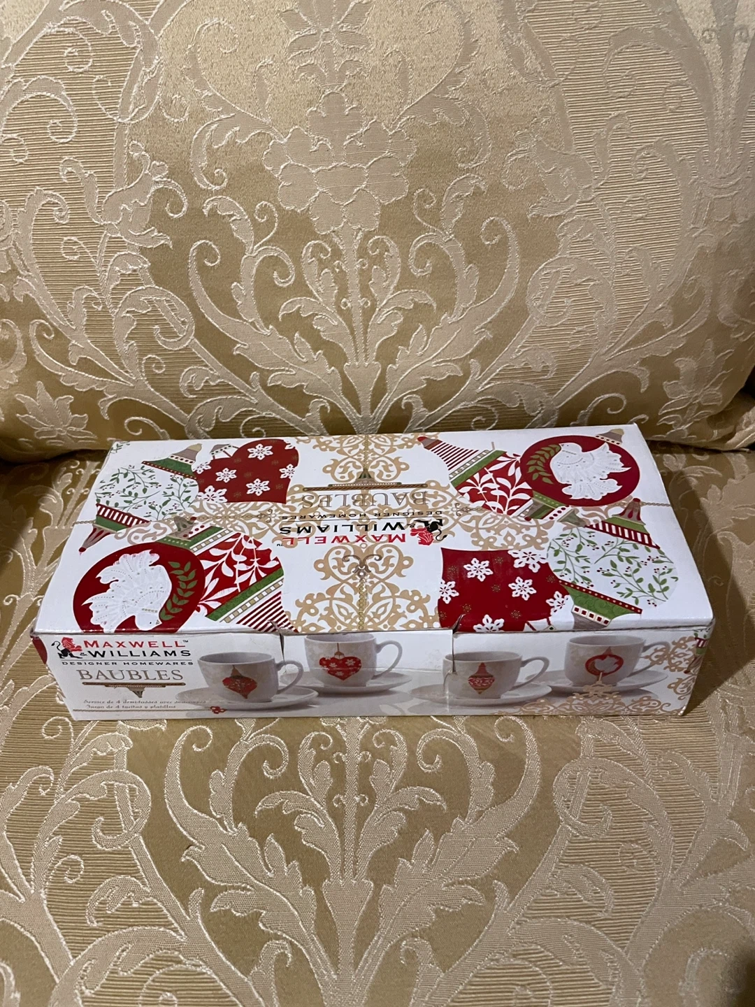 47Selling a set of Maxwell & Williams Baubles espresso cups and saucers. The set includes four cups, each with a different festive design, and four matching saucers. Perfect for adding a touch of holiday cheer to your coffee breaks!