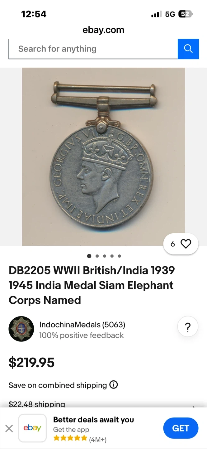 1939-1945 India Medal WWII British/India Siam Elephant Corps