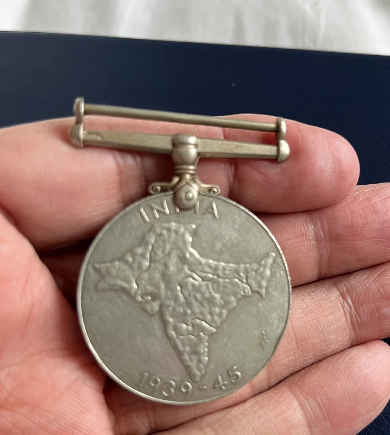 This medal is for service in India during 1939-1945. It features King George VI on the obverse and a map of India on the reverse. It's a historical collectible item from World War II. This medal would be of interest to military history enthusiasts and collectors.