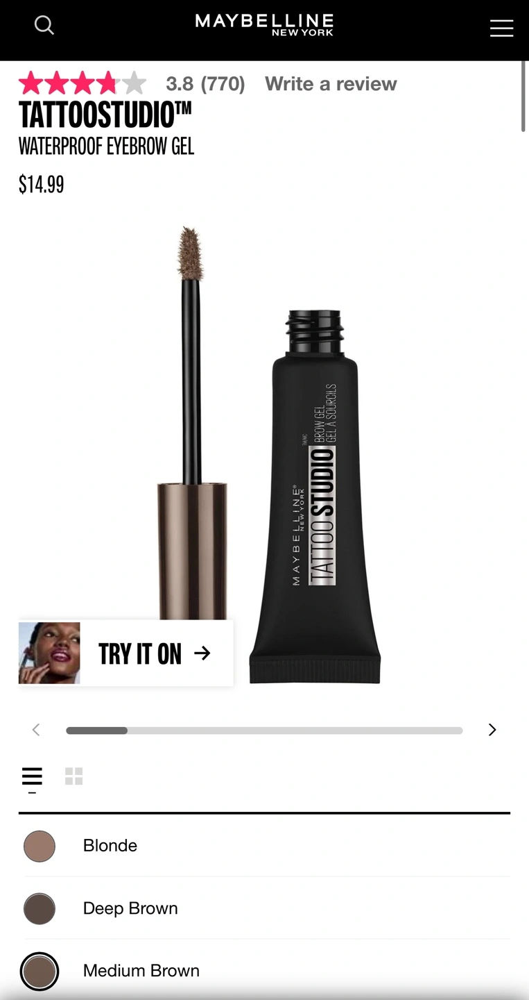 Maybelline Tattoo Studio Waterproof Brow Gel - 257 Medium Brown