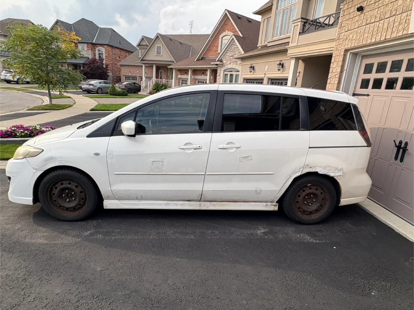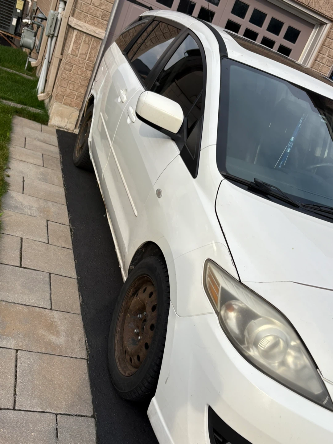 Selling a white Mazda 5 minivan. It has some wear and tear, as shown in the pictures. Great for families or anyone needing extra space! 2009 Mazda 5 Hatchback Drives Manual 260,000 KM Fair condition Drives well Buy as it is Recently got a new battery