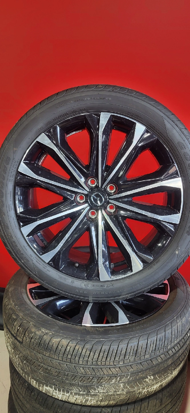Selling a Mazda OEM wheel rim in black and silver. It's in used condition, so please check the photos for details