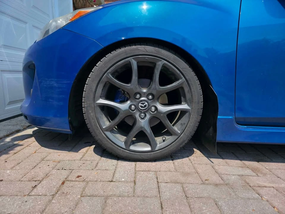 Selling my speed rims, no bends or cracks. Factory Dark Grey Wheel Size: 18 inches x 7.5 inches Bolt Pattern: 5 bolts with a 114.3 mm Offset: +52.5 mm Center Bore: 67.1 mm Rim sells for $700+ PER RIM from dealer Tires are basically brand new Used for 3 Months 225-40-R18 Pirelli P-Zero Nero AS3+ UHP Tires Paid $1100 for the tires Wheels are balanced and ready to be used Thanks for reading!