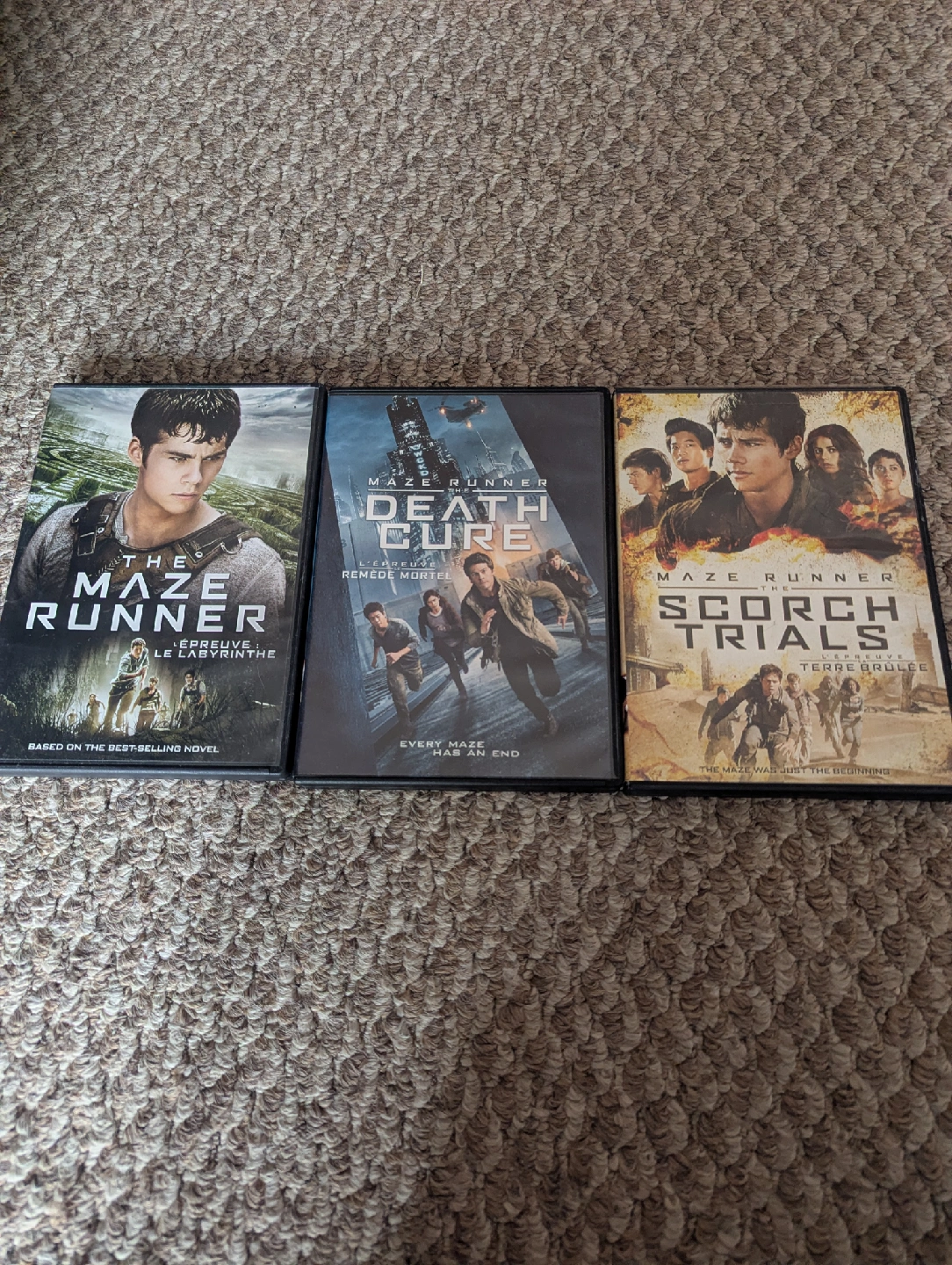 37Maze Runner trilogy on DVD The Maze Runner, Scorch Trials, and Death Cure. Great for fans of the series or anyone looking for a thrilling watch