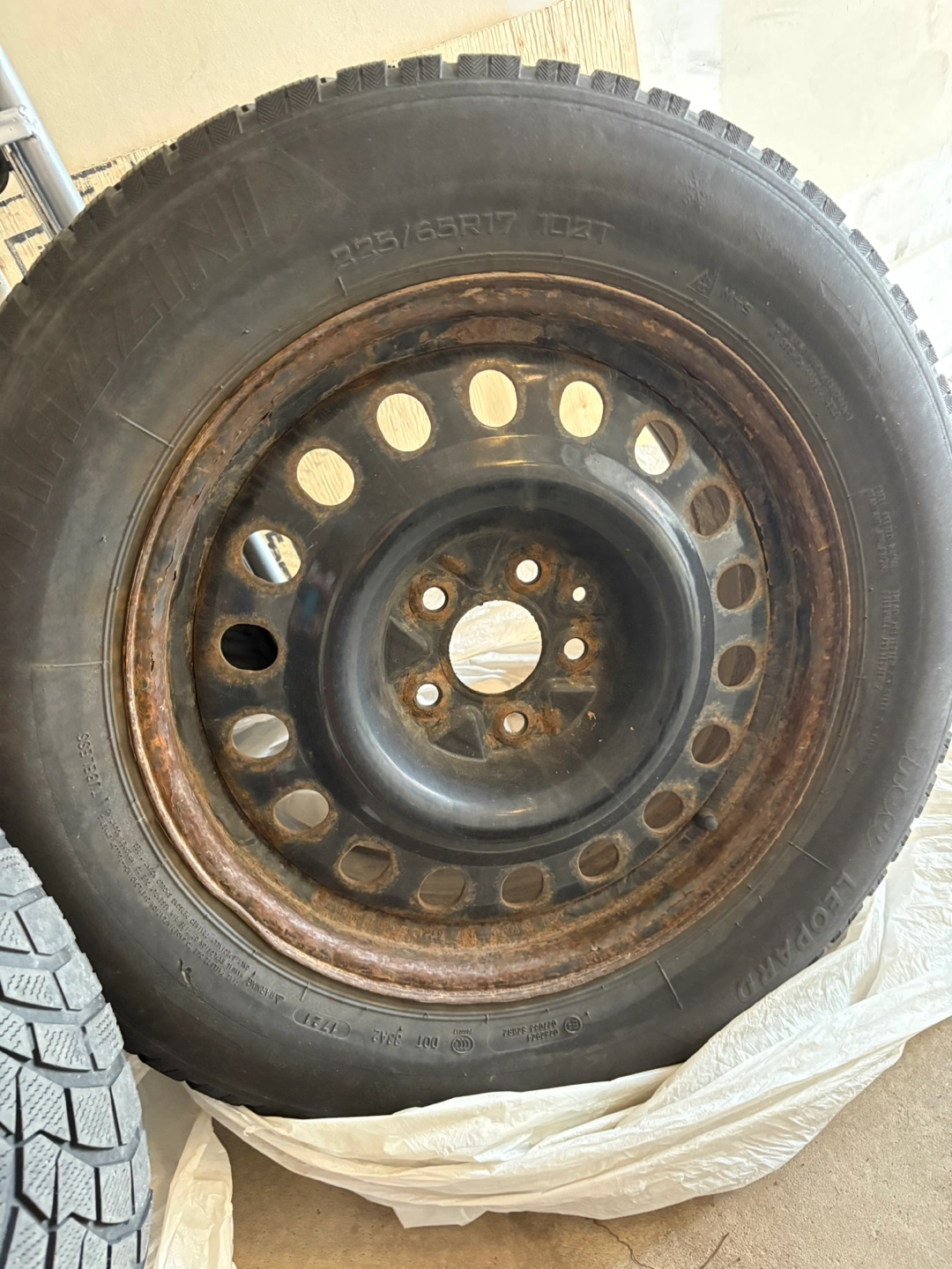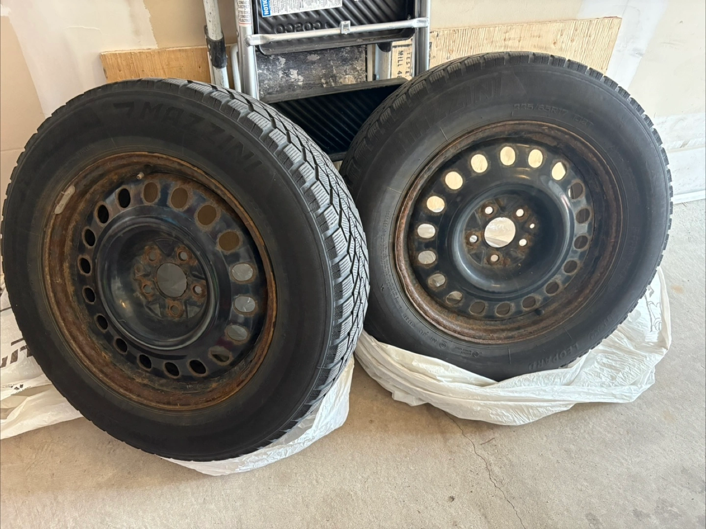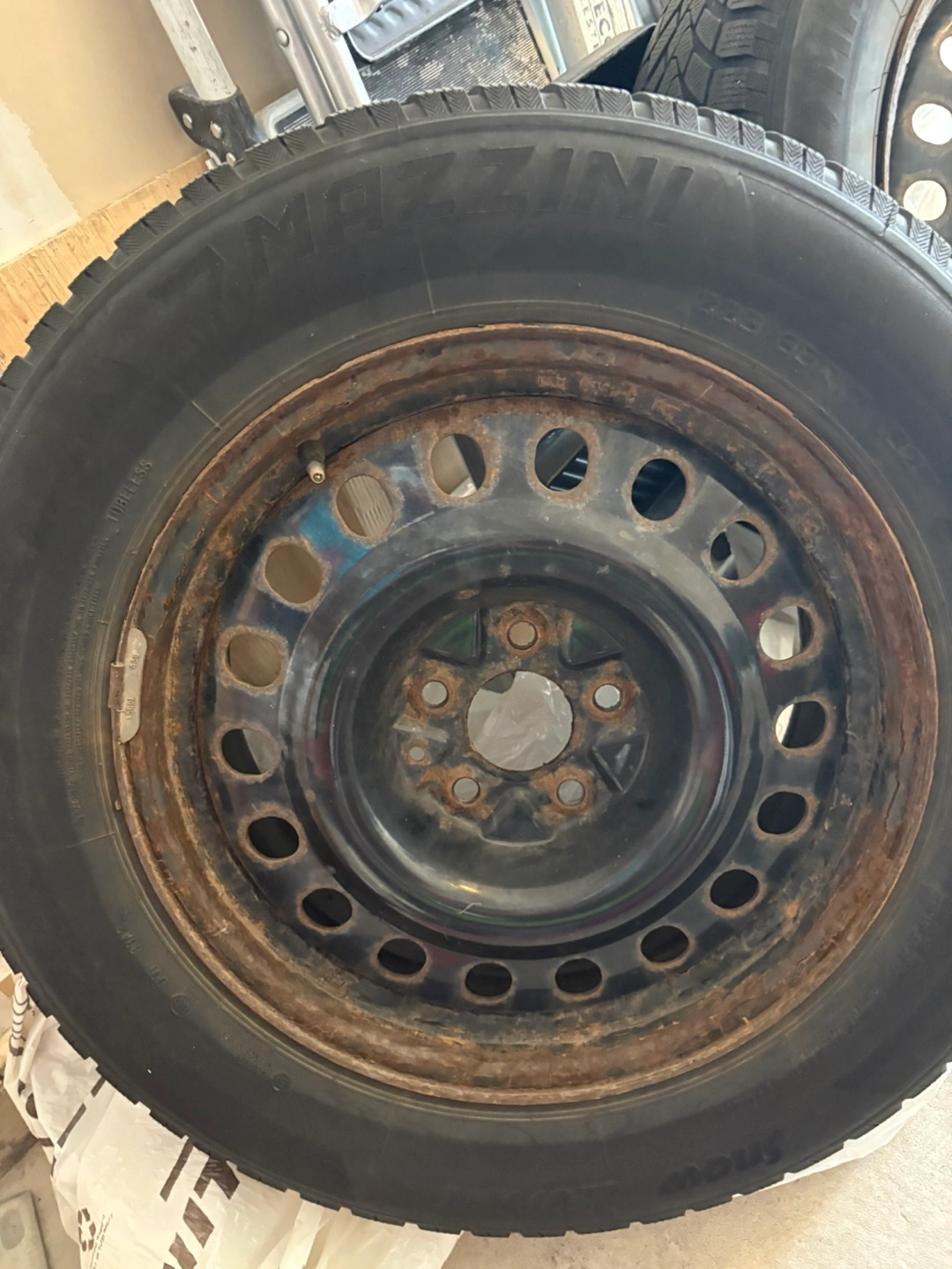 Selling a pair of Mazzini Snow Leopard winter tires with rims, size 235/65R17. They're ready to help you tackle the snowy roads this winter season! Only used for 2 winter seasons.