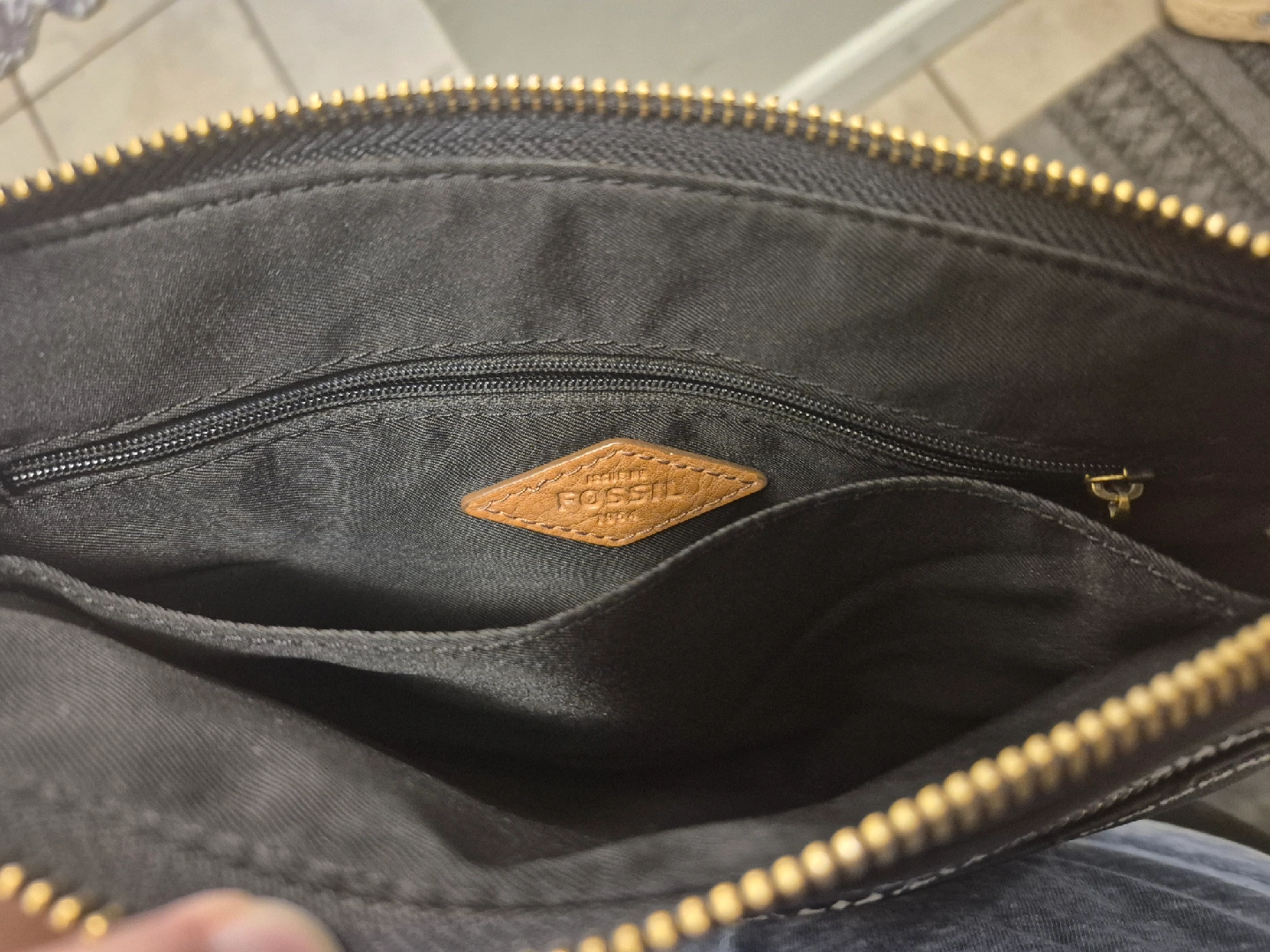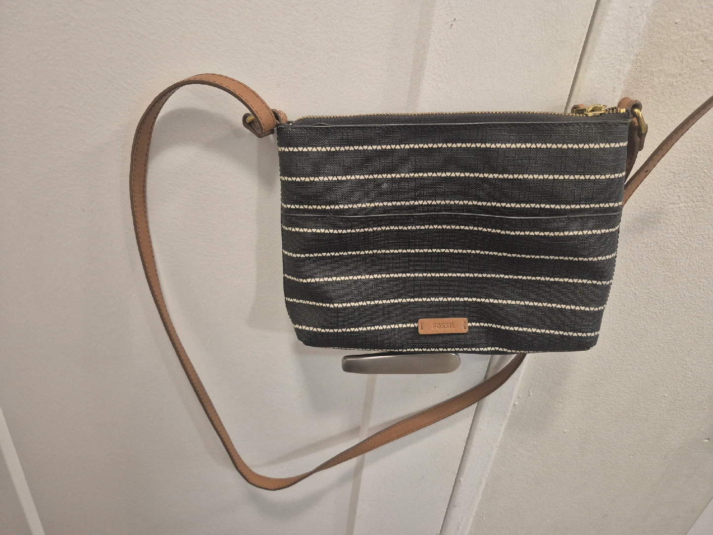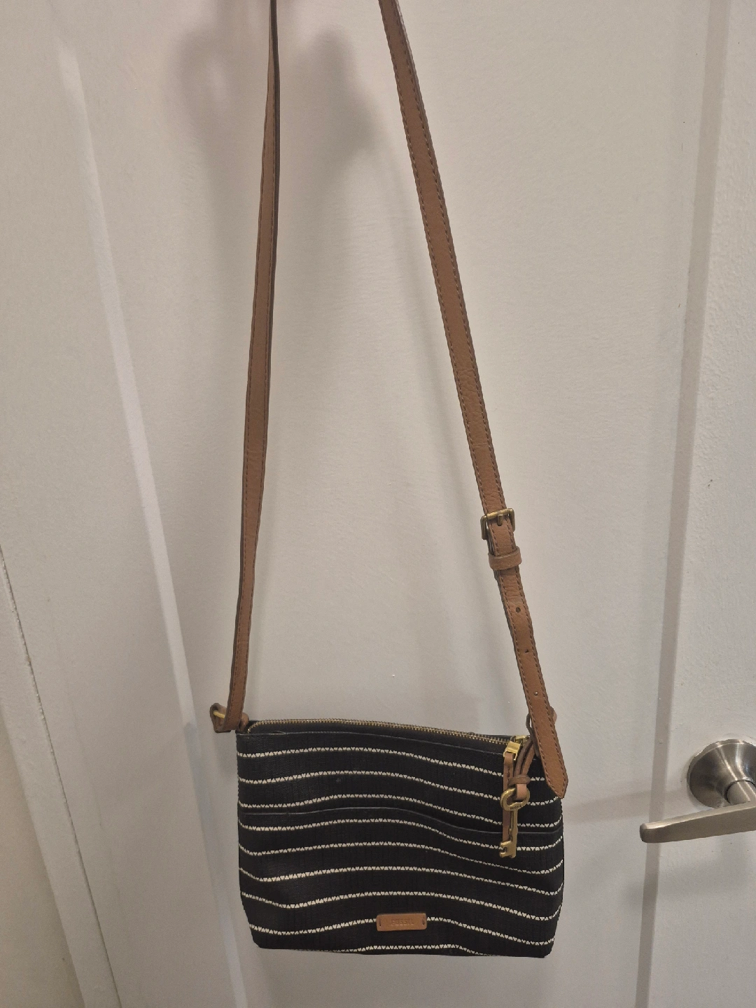 Selling a cute Fossil crossbody bag! It's black with white stripes and has a tan leather strap. Perfect for everyday use and keeping your essentials close by. Located North end of St Thomas.