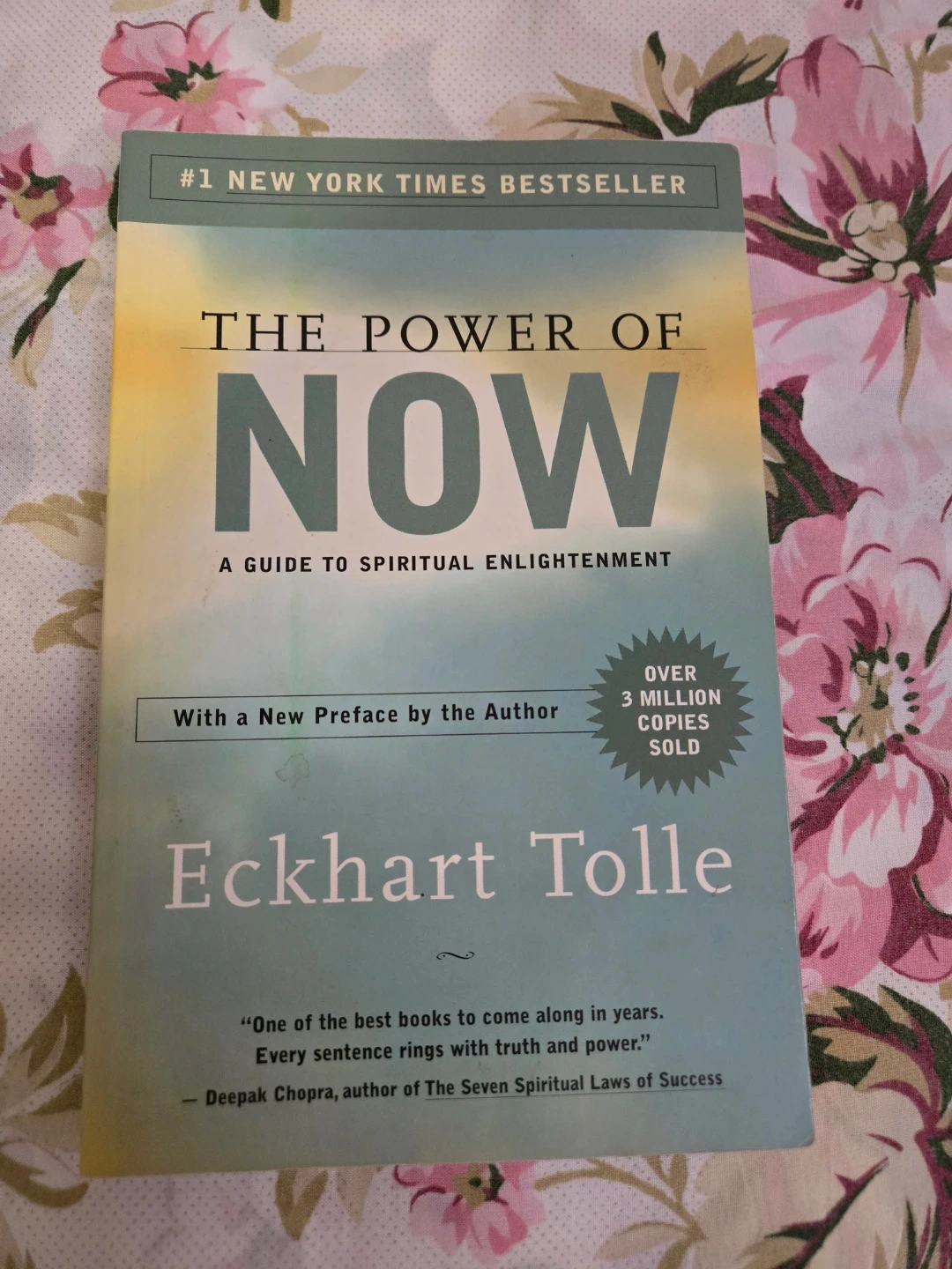 This book is 'The Power of Now: A Guide to Spiritual Enlightenment' by Eckhart Tolle. It's a #1 New York Times bestseller with over 3 million copies sold. It includes a new preface by the author.