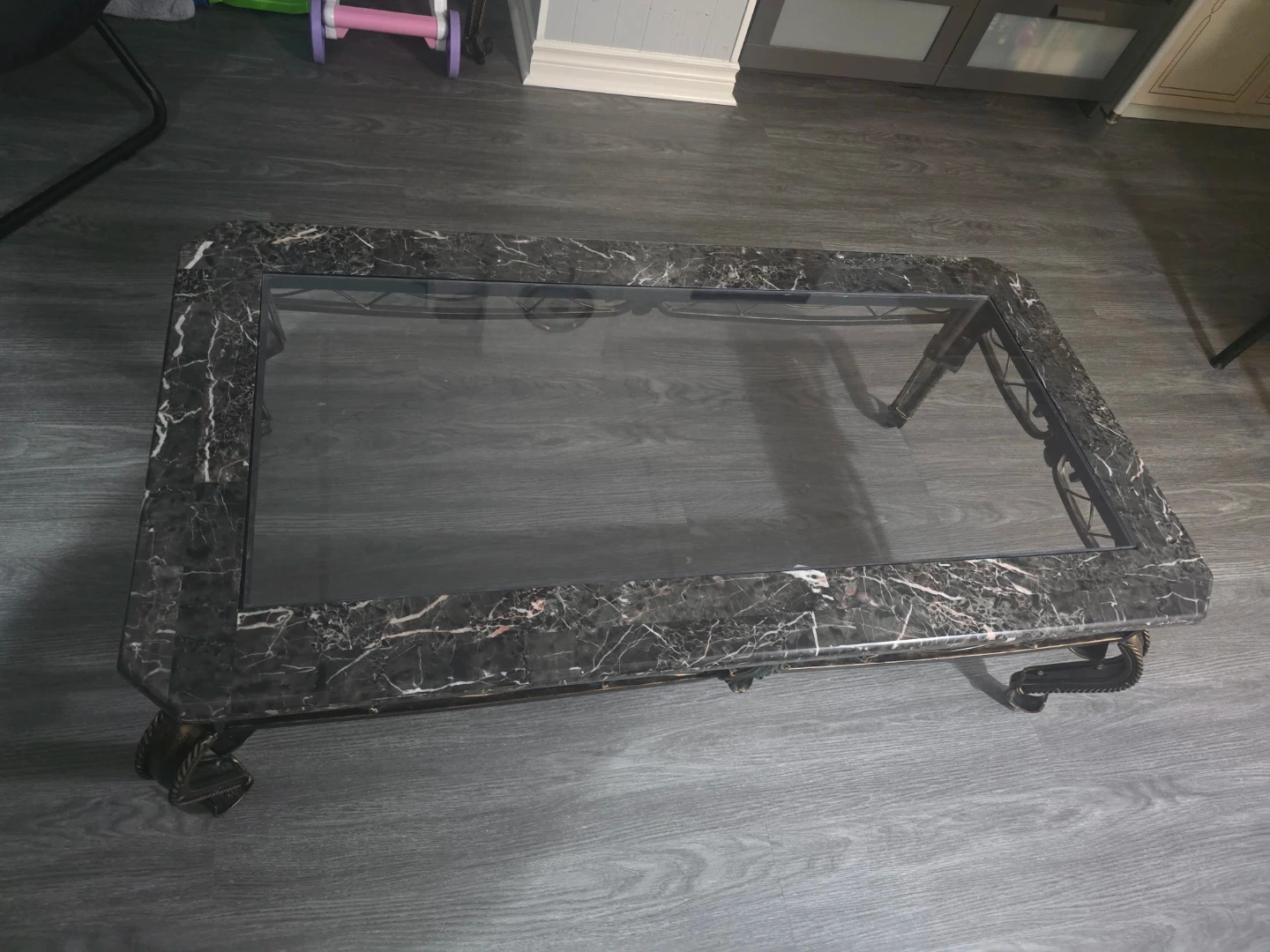 Marble Top Coffee Table with Glass Insert